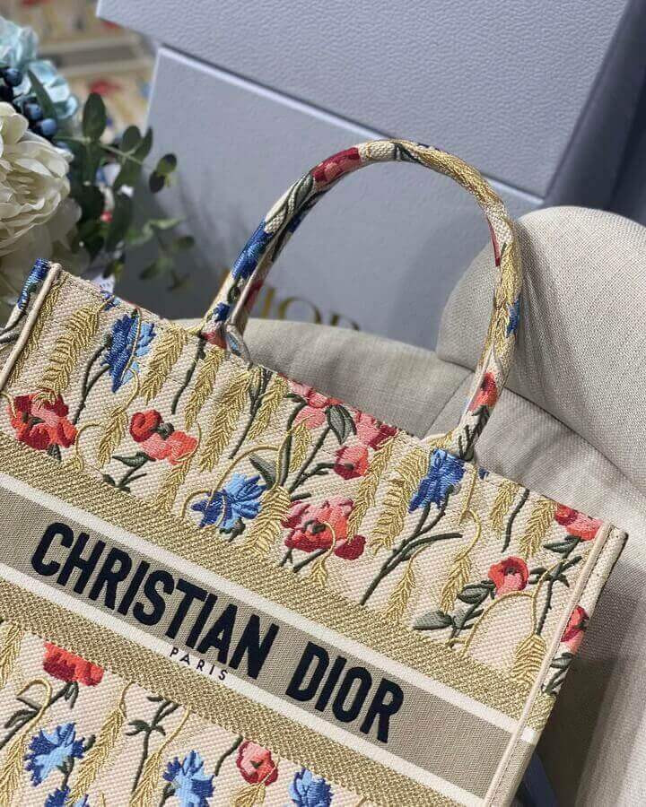 Dior Small Book Tote Ricamo Mizza Beige Multicolore M1296