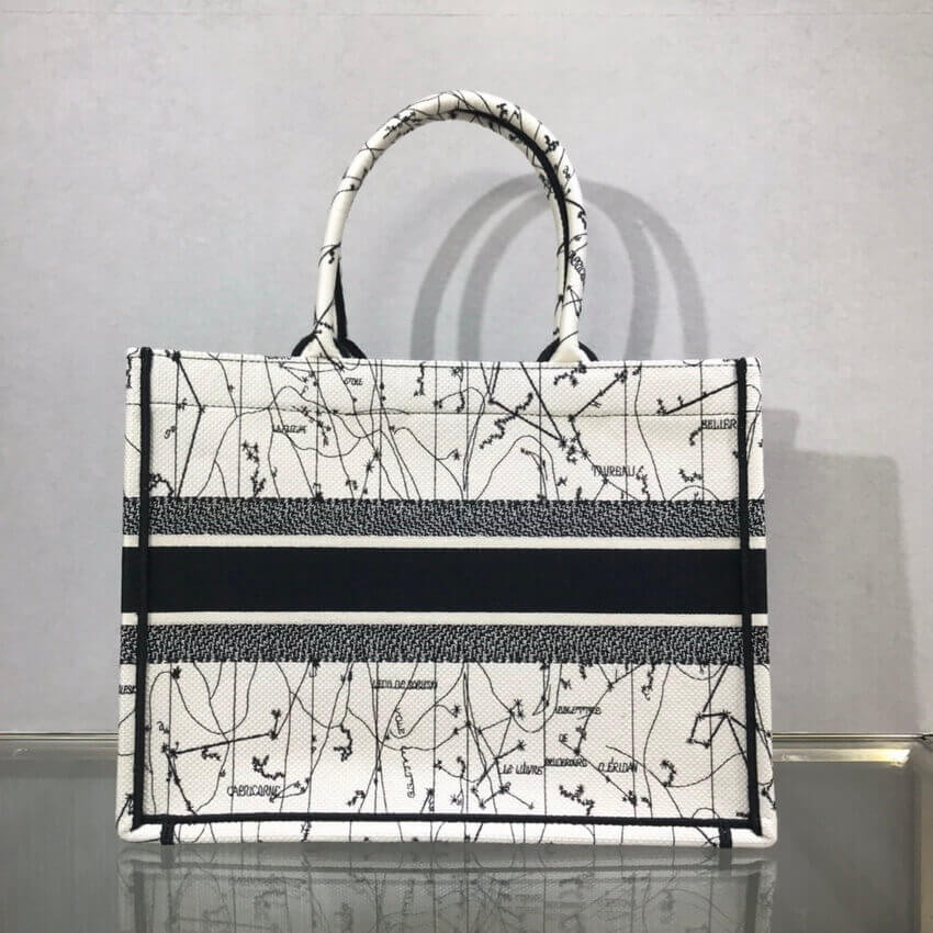 Dior Small Book Tote in Latte Multicolor Zodiac Embroidery M1296