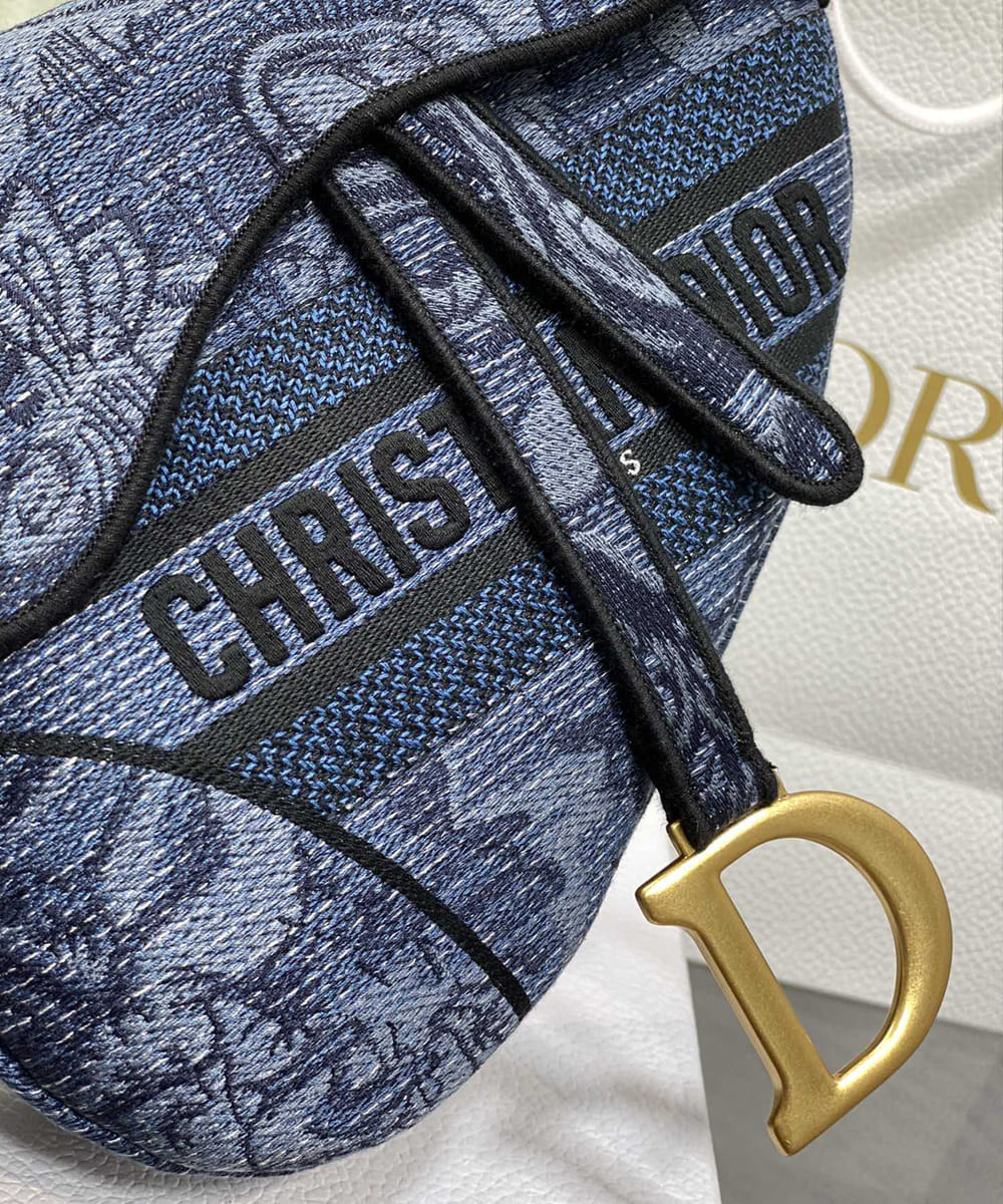 Dior Saddle Bag Denim Blue Toile de Jouy Embroidery M0446
