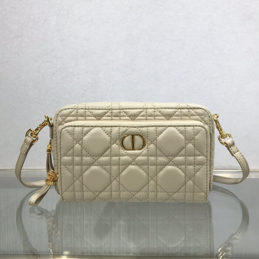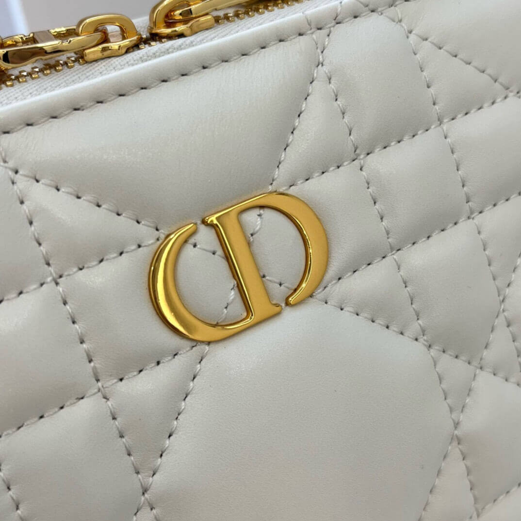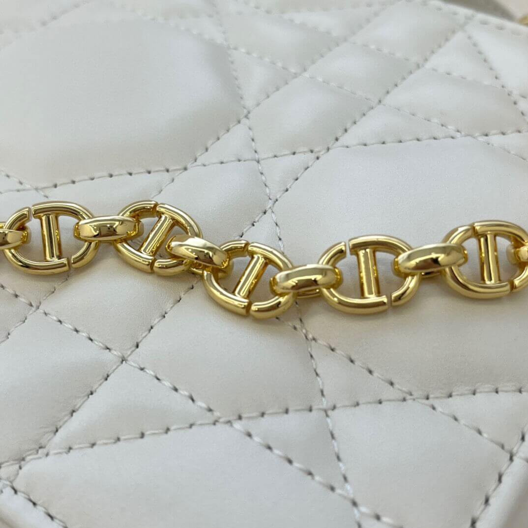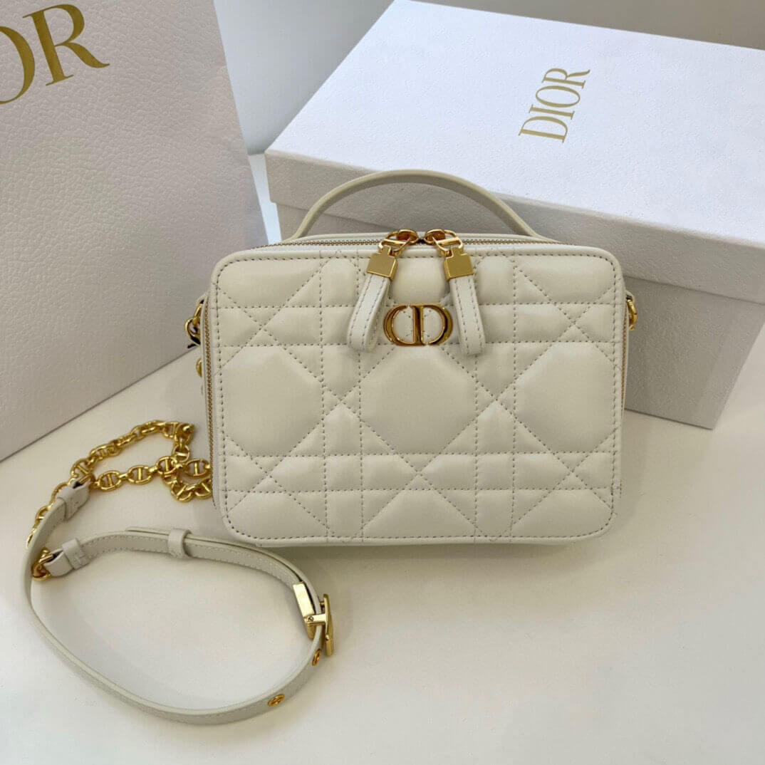 Christian Dior Caro Box Bag With Chain Latte Quilted Macrocannage Calfskin S5140
