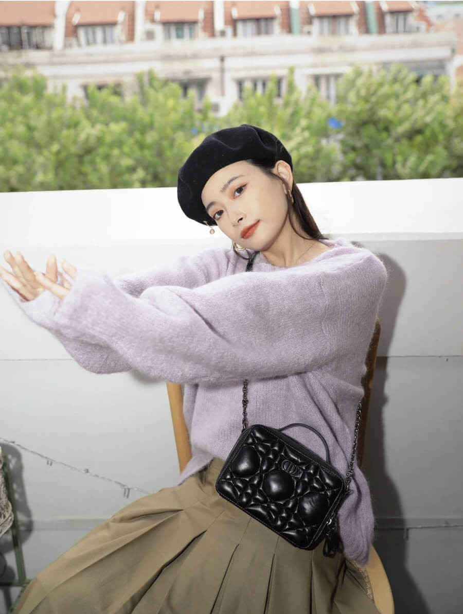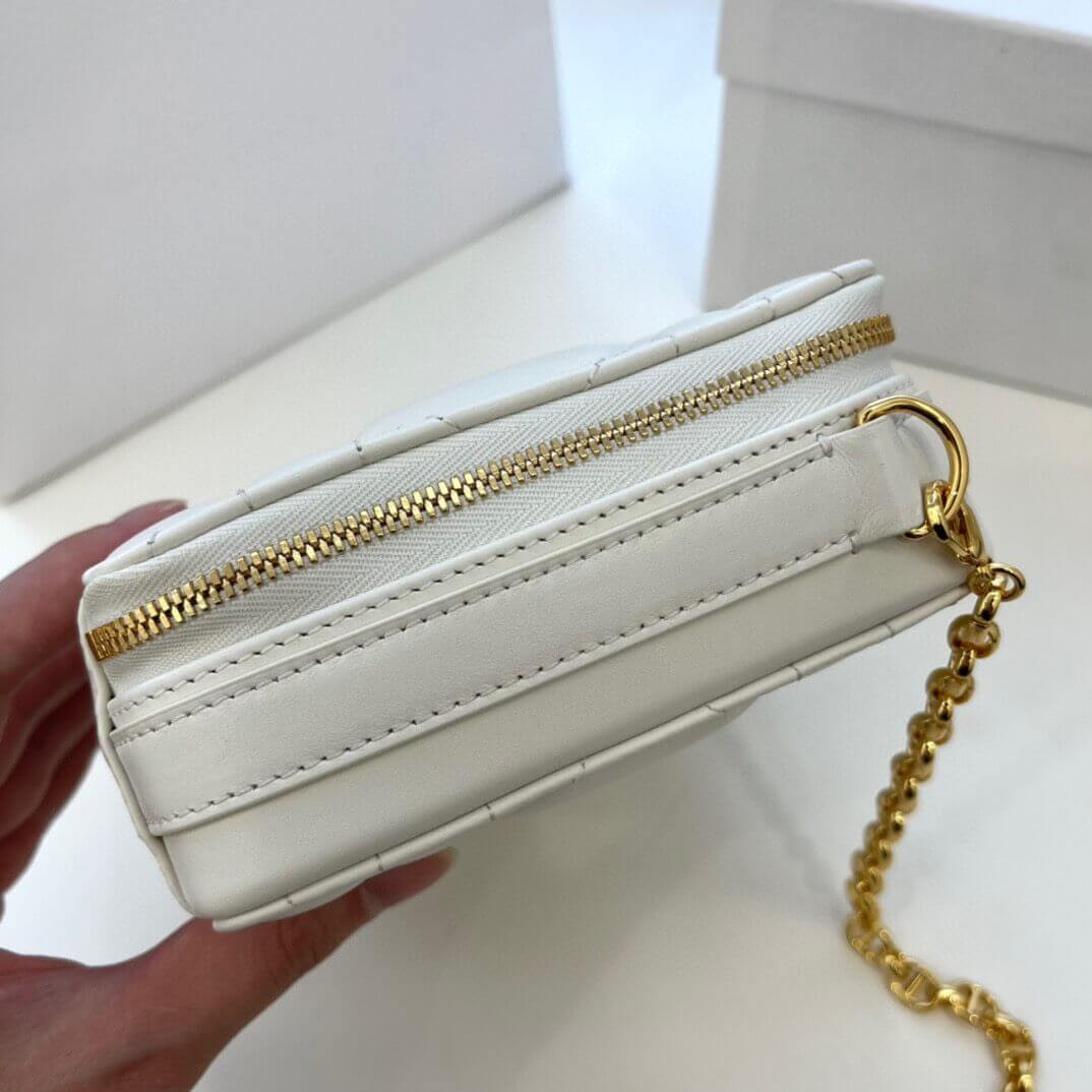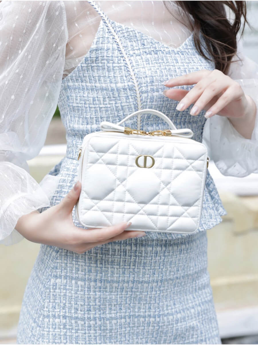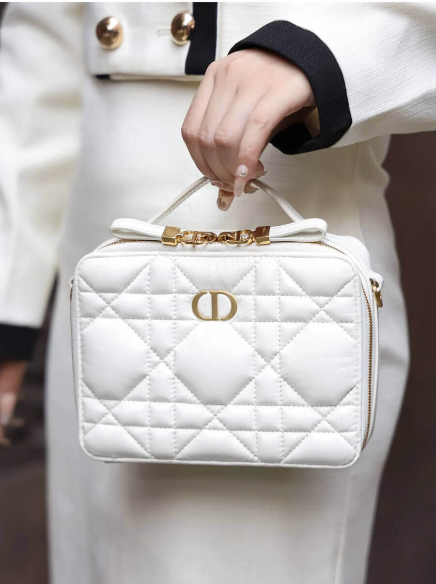 Christian Dior Caro Box Bag With Chain Latte Quilted Macrocannage Calfskin S5140