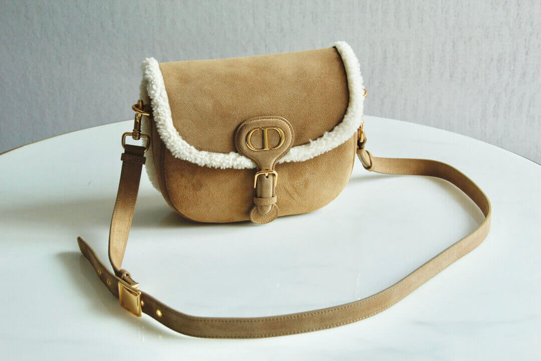 Dior Medium Bobby Bag in Camel-Colored Shearling M9319