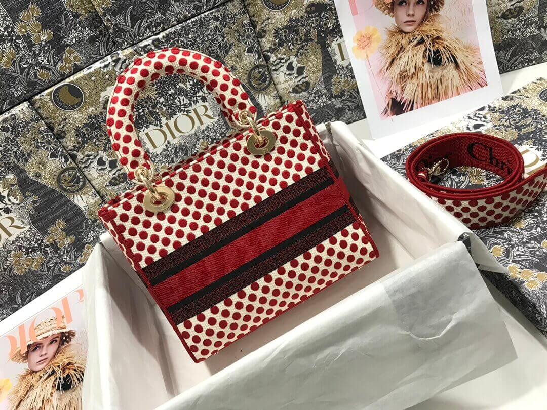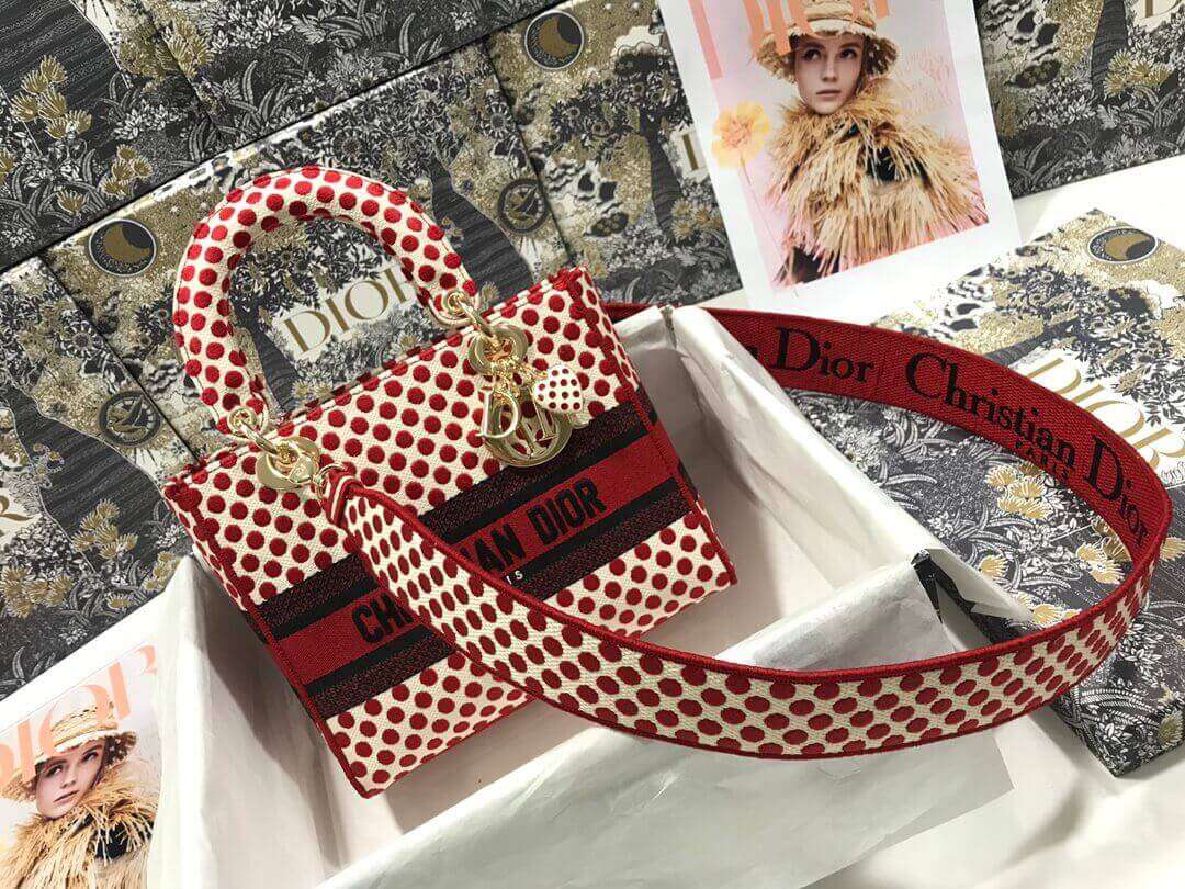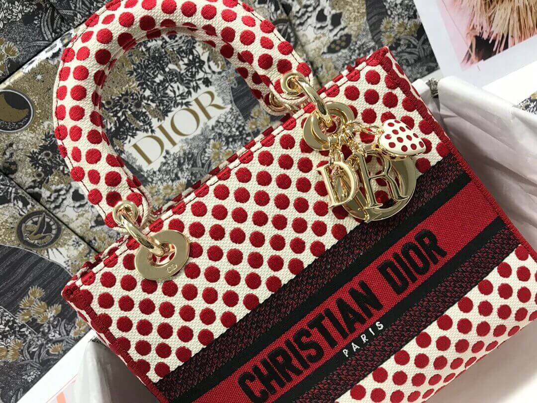 Dior Medium Lady D-Lite Dioramour Bag in Dots Embroidery M0565