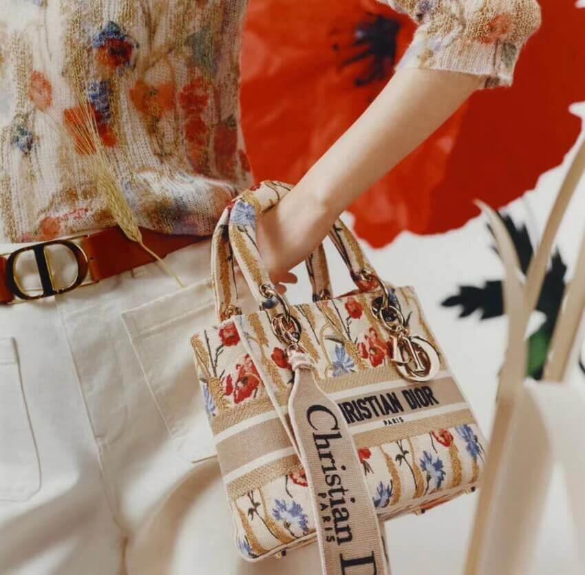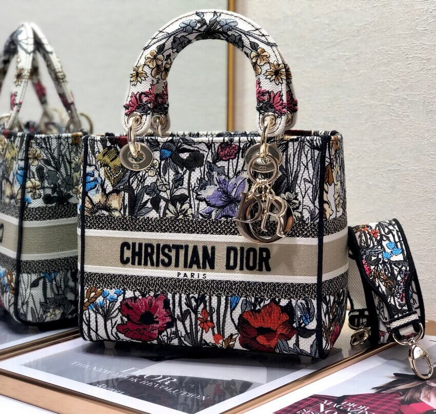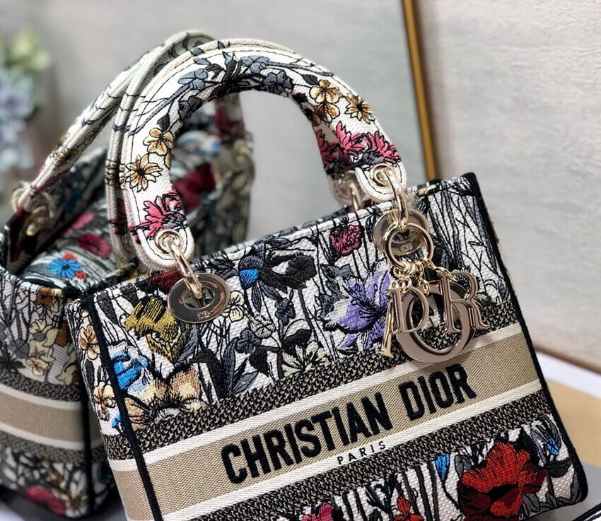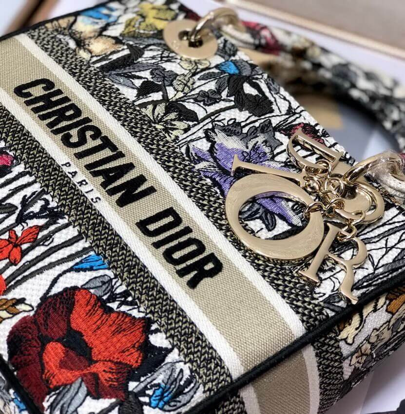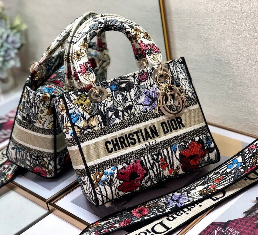 Dior Medium Lady D-Lite Bag in Multicolor Mille Fleurs Embroidery M0565