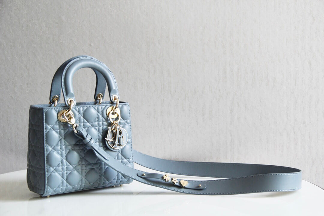 Dior Medium Blue D-Stripes Embroidery Lady D-Lite Bag M0565
