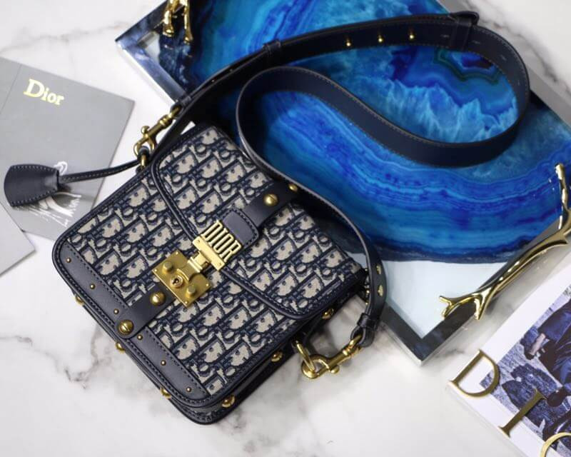 Christian Dior Small Dior Bobby Bag in Blue Dior Oblique Jacquard M9317