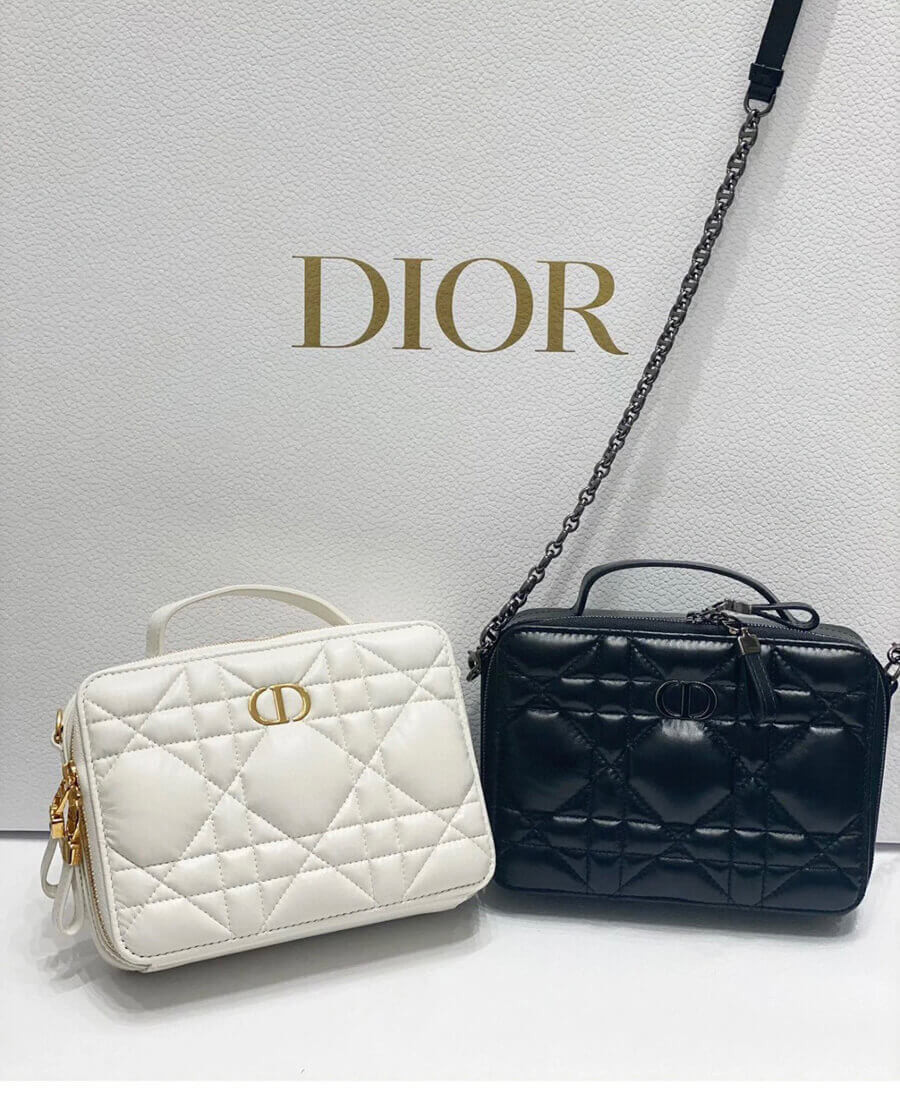 Christian Dior Caro Box Bag With Chain Black Quilted Macrocannage Calfskin S5140