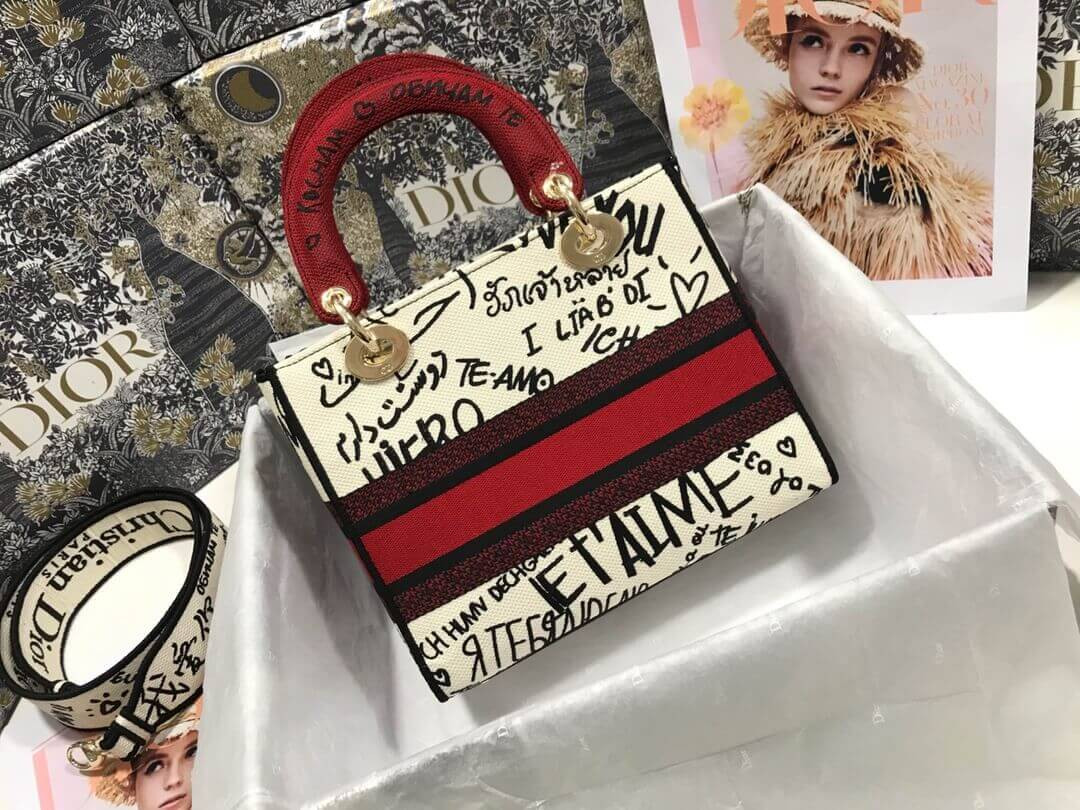 Dior Medium Lady D-Lite Dioramour Bag Latte Multicolor Dioramour Graffiti Embroidery M0565