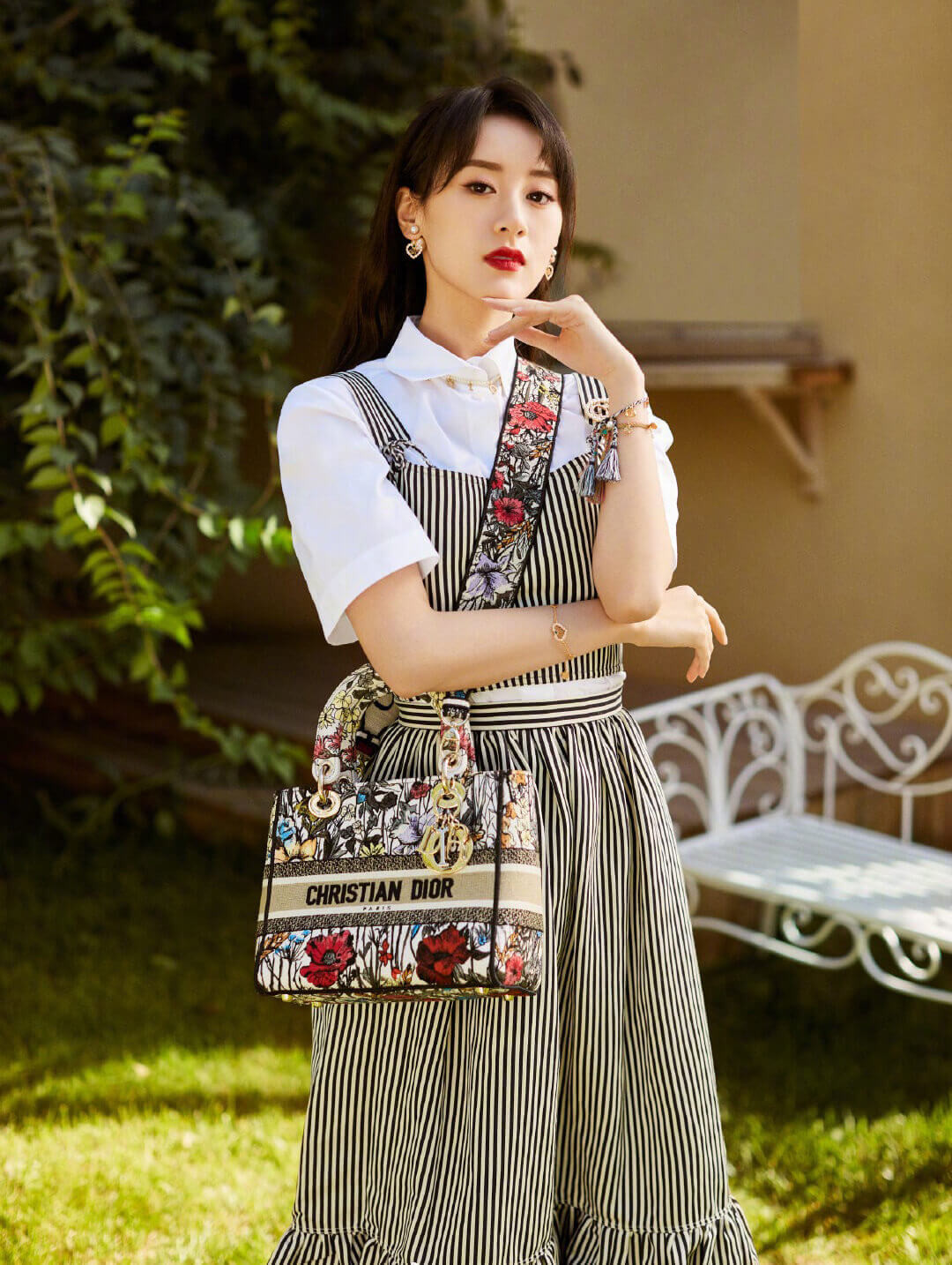 Dior Medium Lady D-Lite Hibiscus Metallic Thread Embroidery Bag M0565
