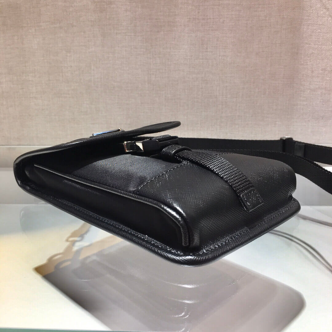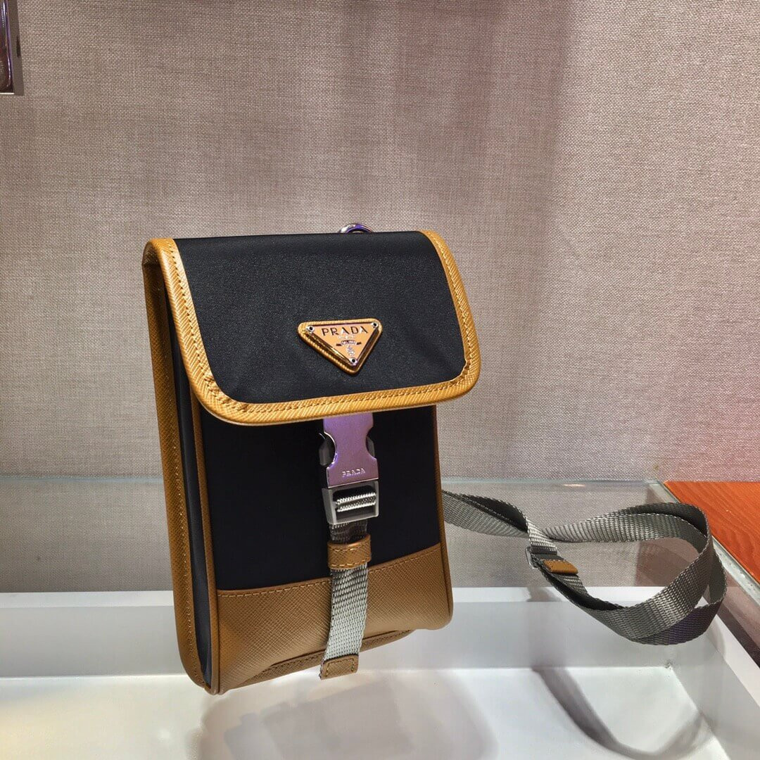 Prada Nylon and Saffiano Leather Smartphone Case 2ZH109 Black Caramel