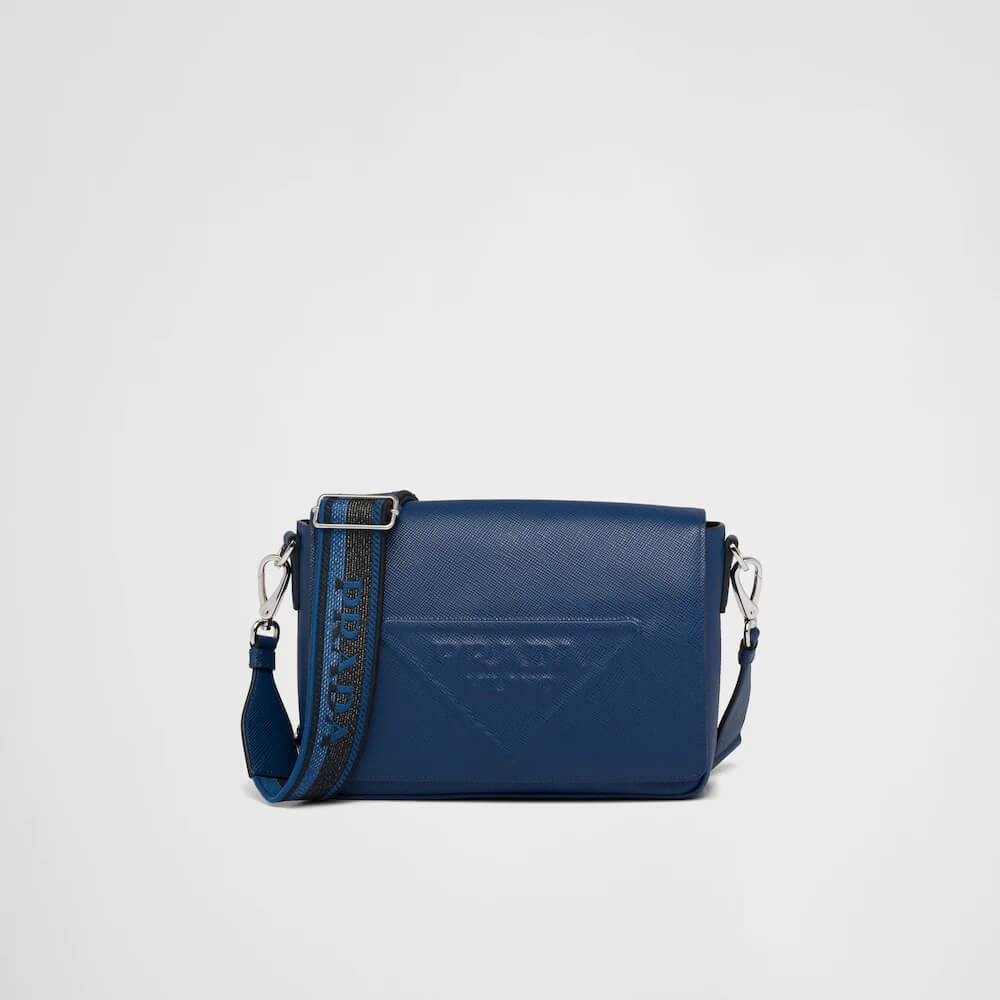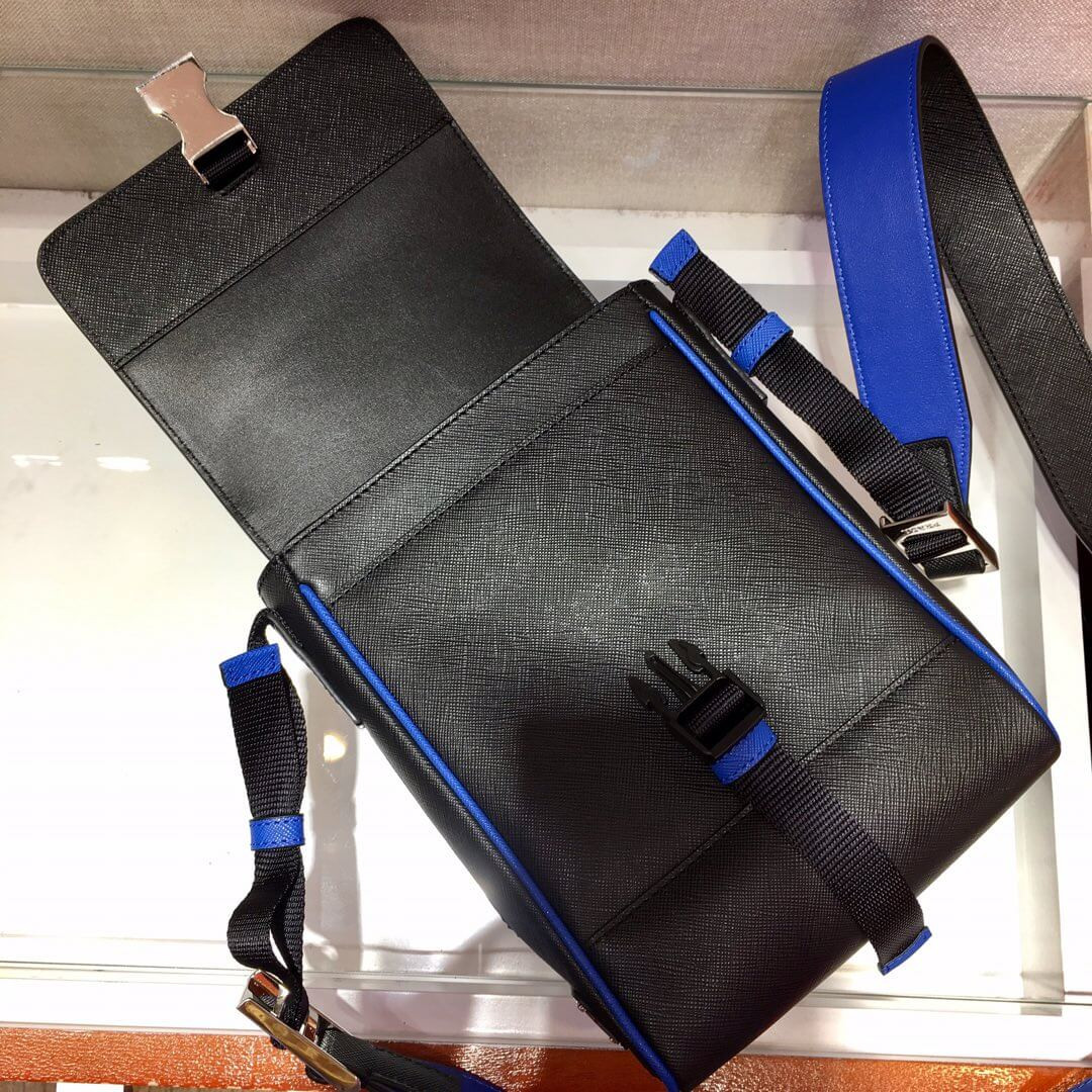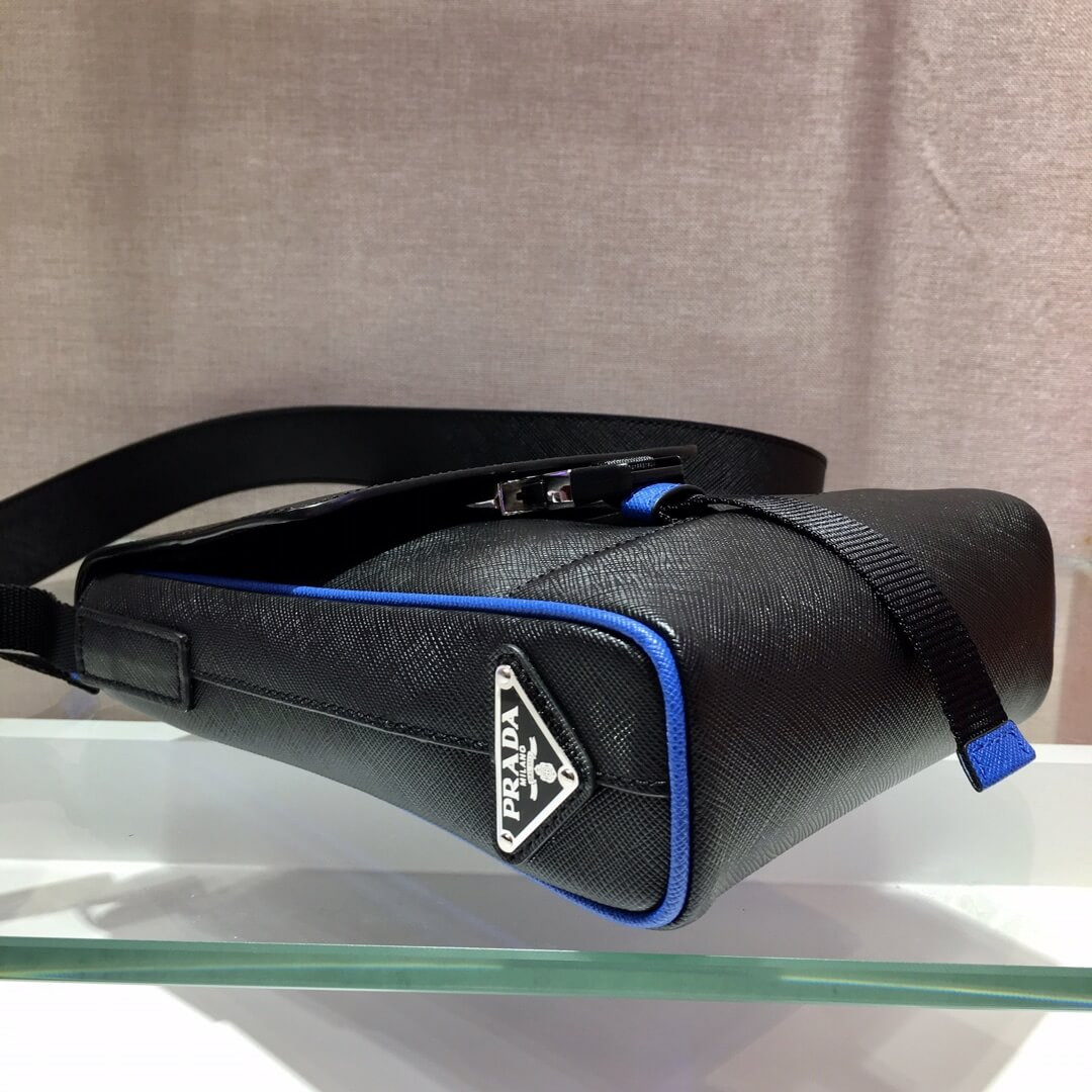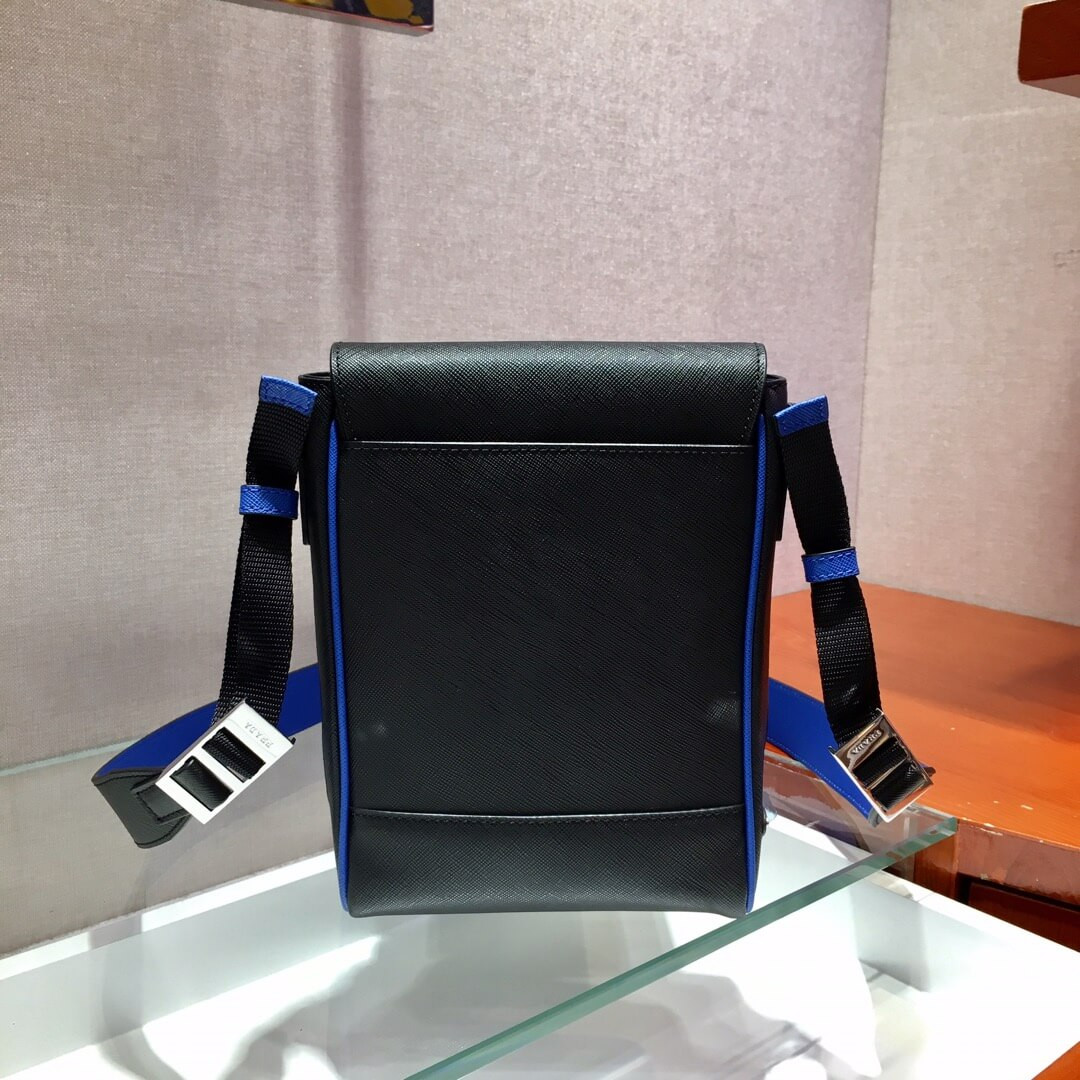 Prada Saffiano Leather Shoulder Bag 2VD019 Black/Blue
