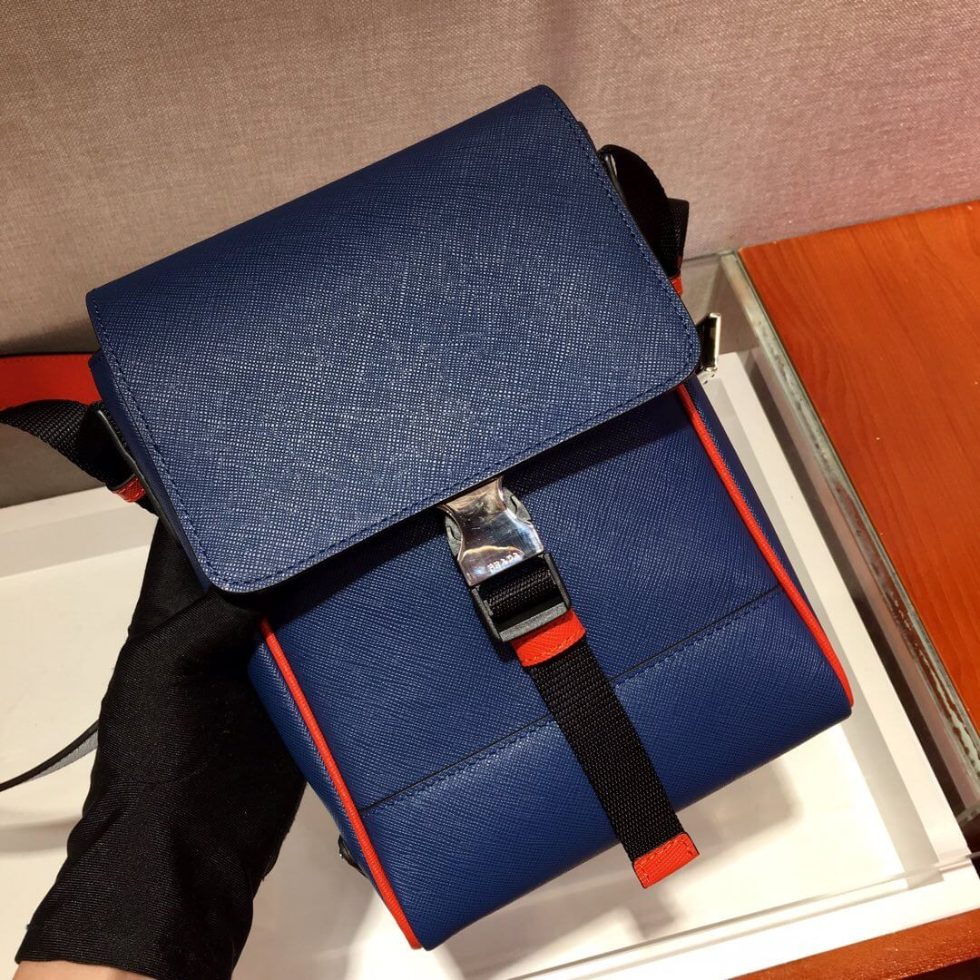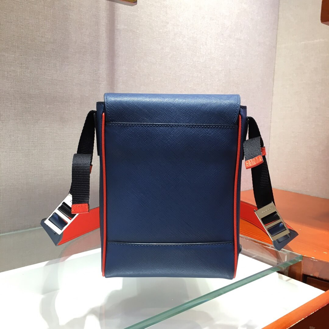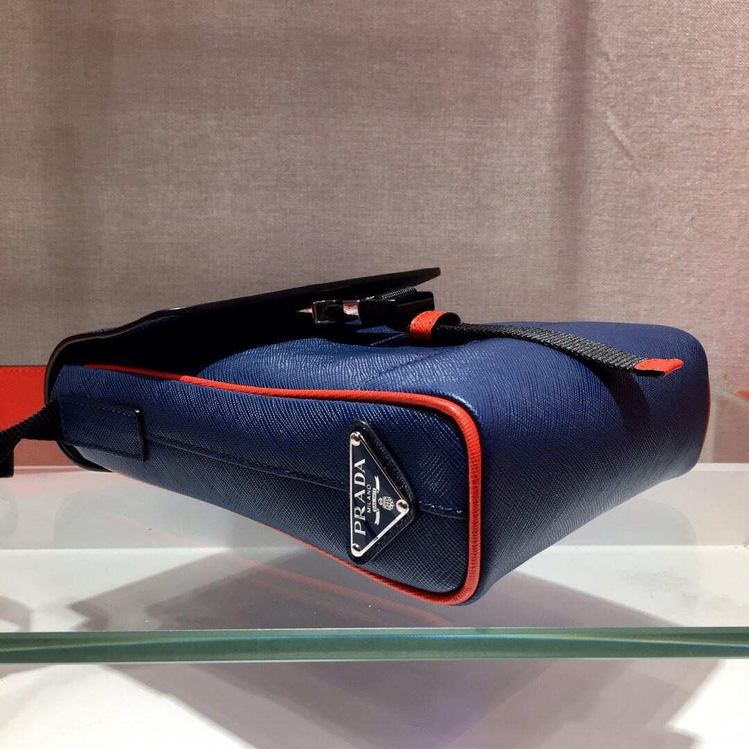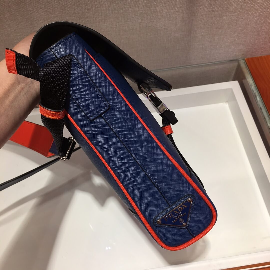 Prada Saffiano Leather Shoulder Bag 2VD019 Blue/Orange