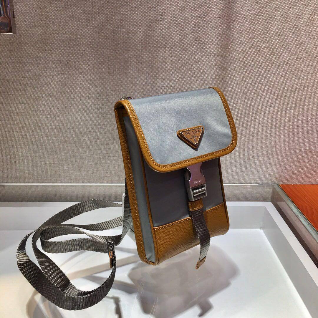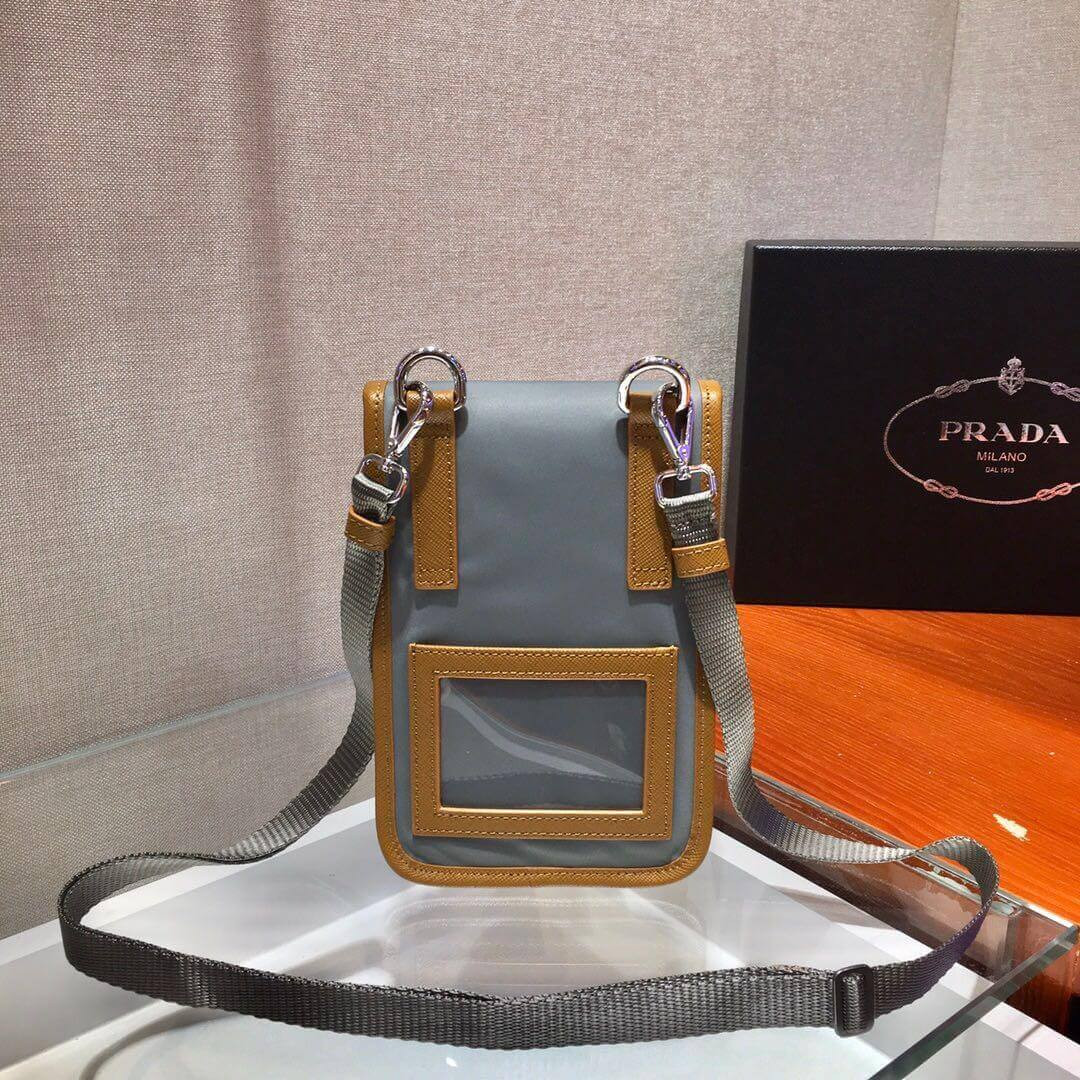 Prada Nylon and Saffiano Leather Smartphone Case 2ZH109 Gray/Caramel