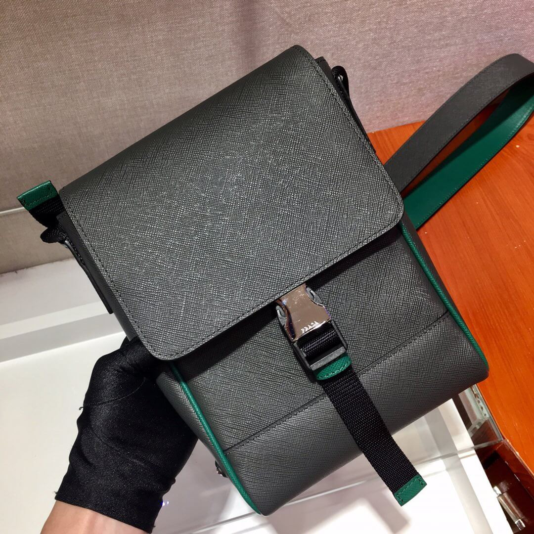 Prada Saffiano Leather Shoulder Bag 2VD019 Dark Green