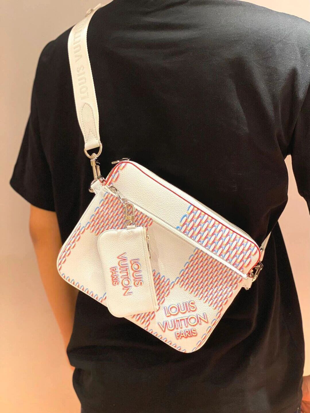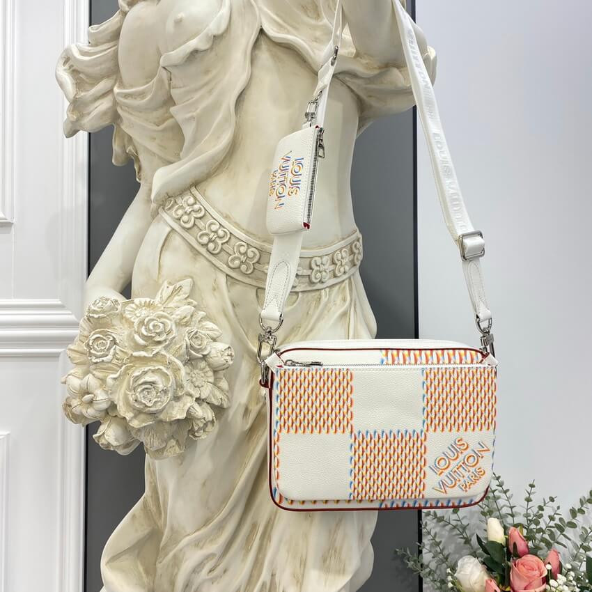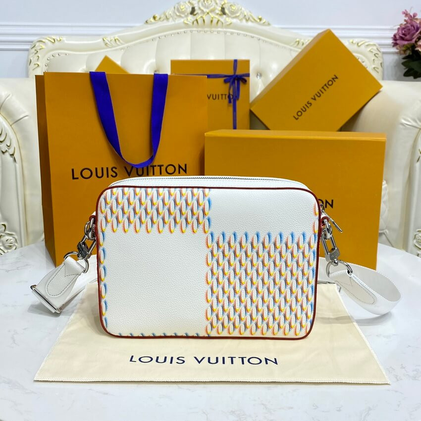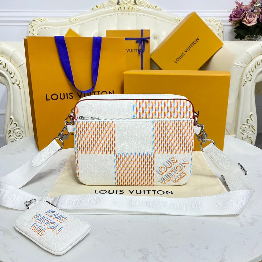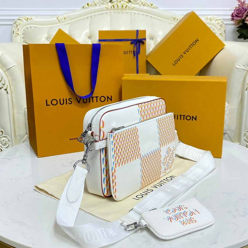 Louis Vuitton White Damier Spray Leather Trio Messenger M20665