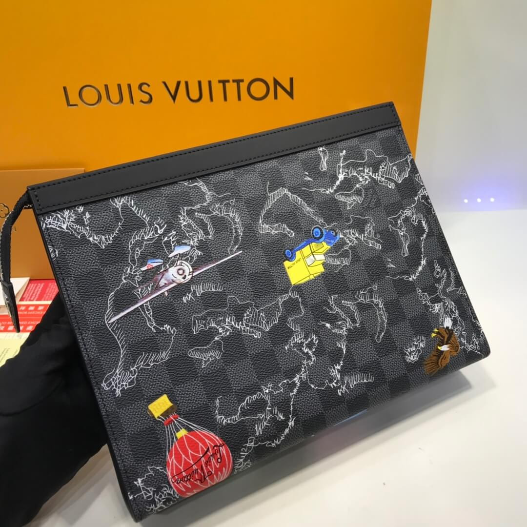 Louis Vuitton Damier Graphite 3D Canvas Pochette Voyage N60443 N60444