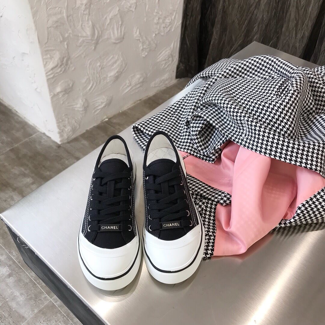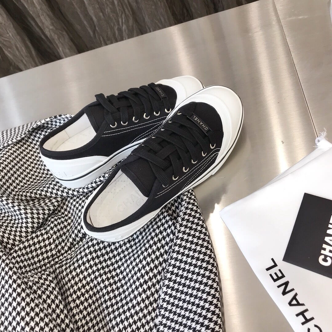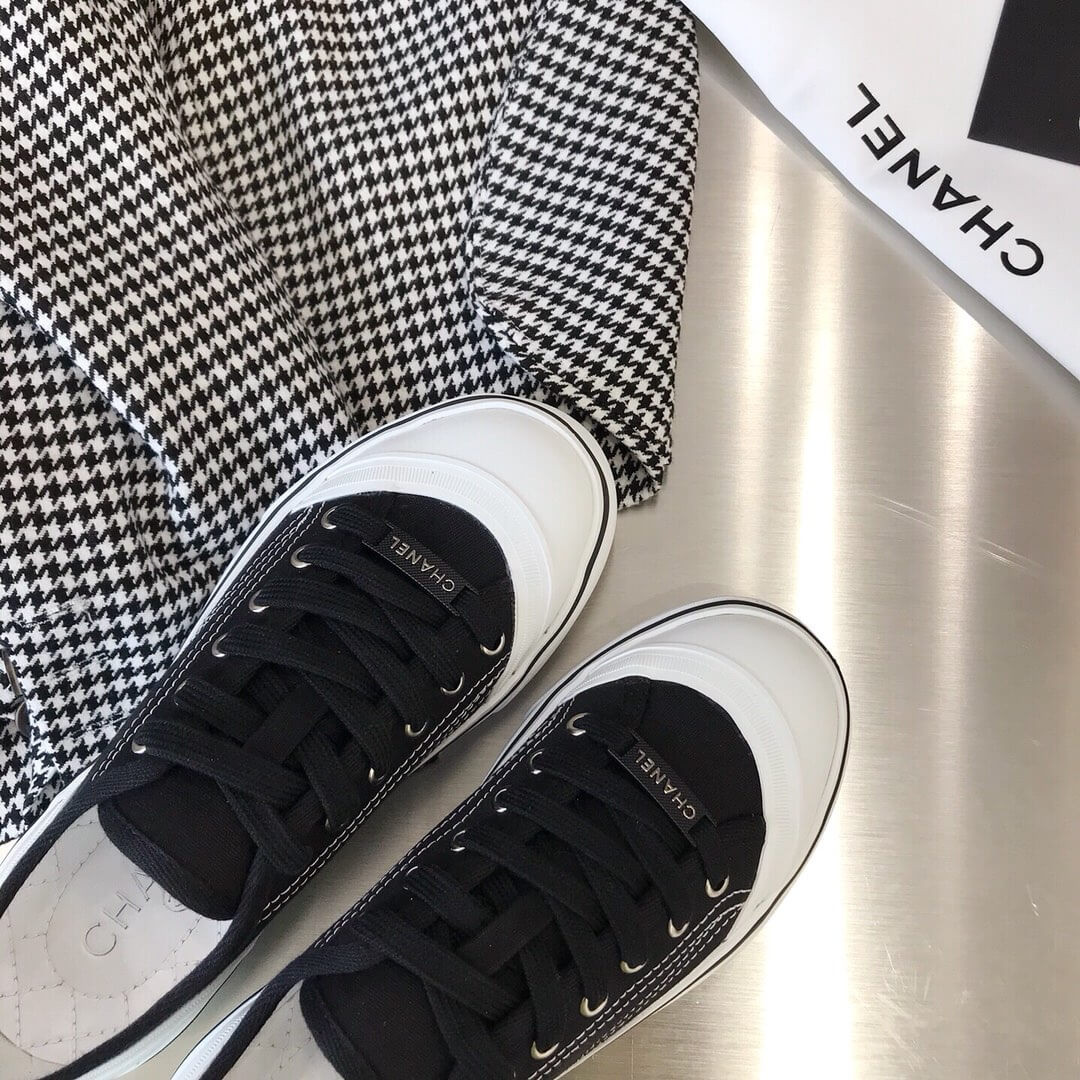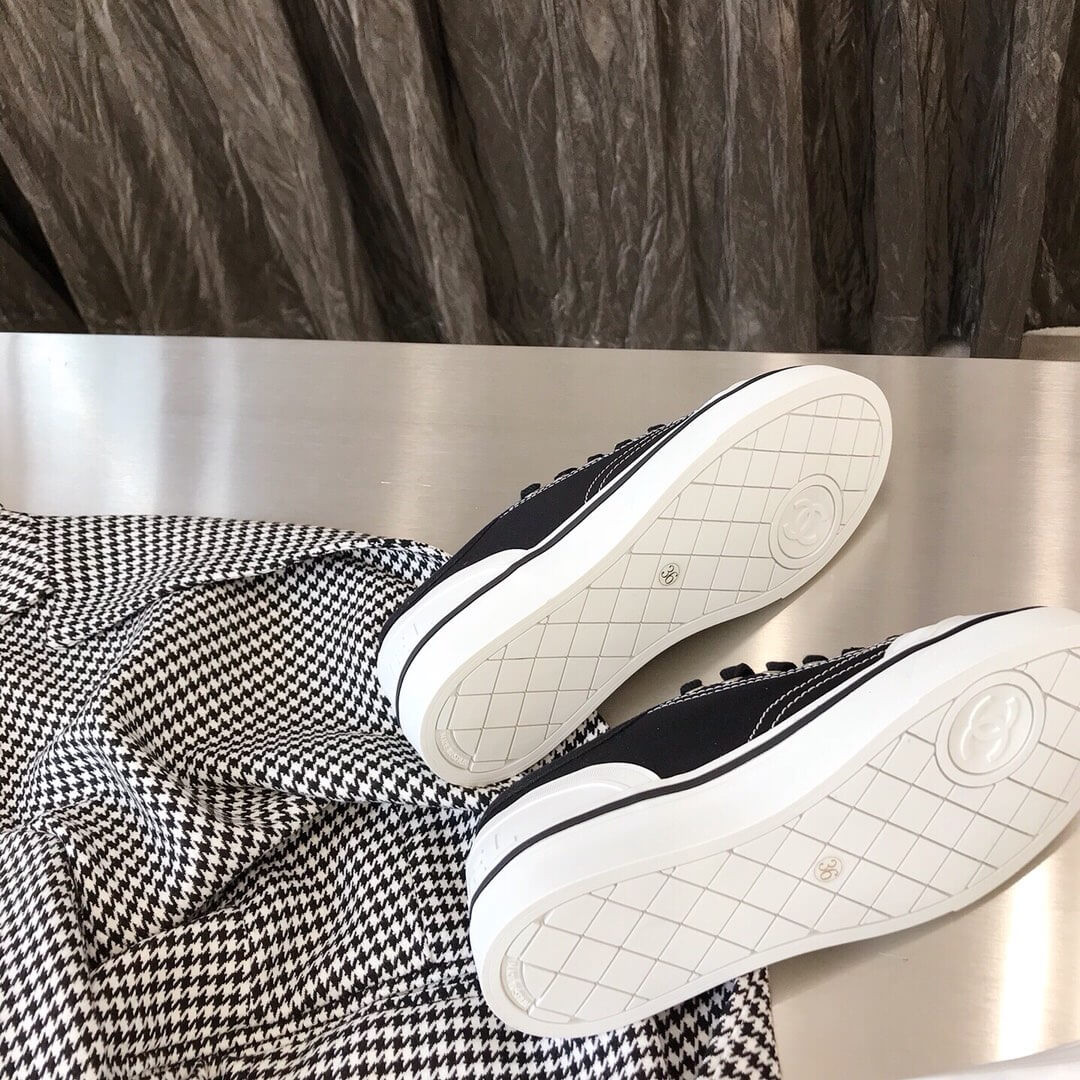 Chanel Canvas Low-cut Sneakers Black and White Texture