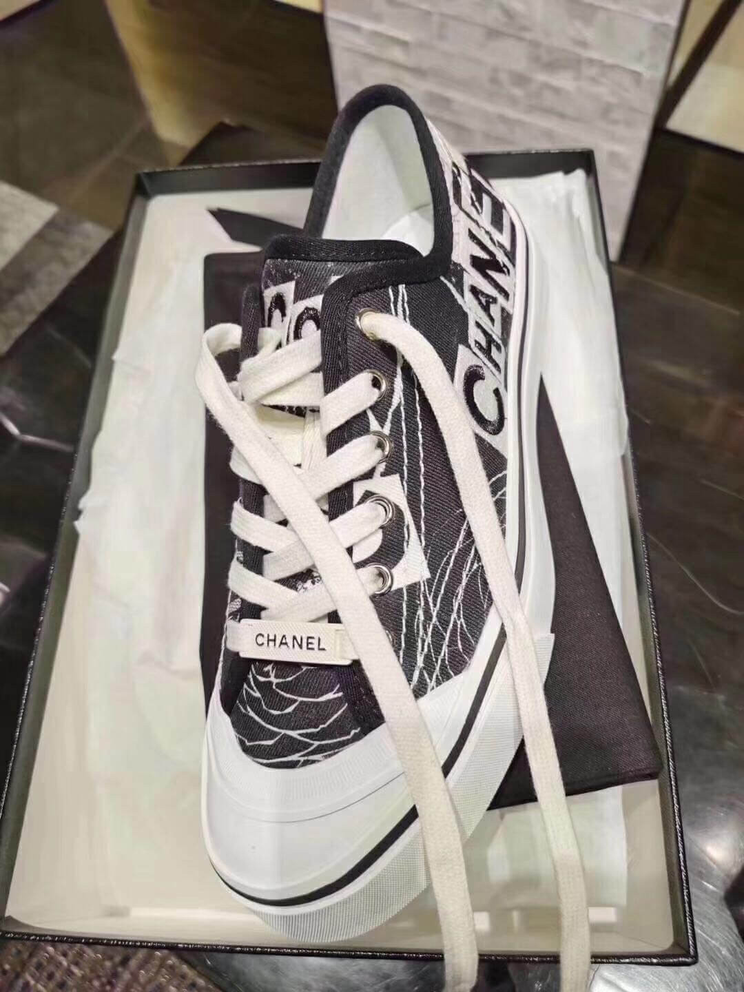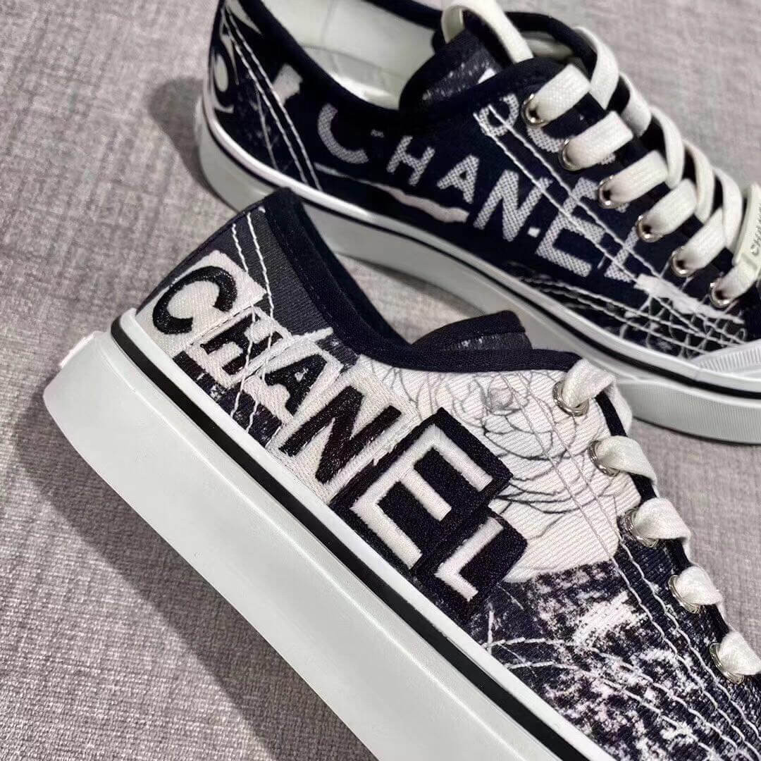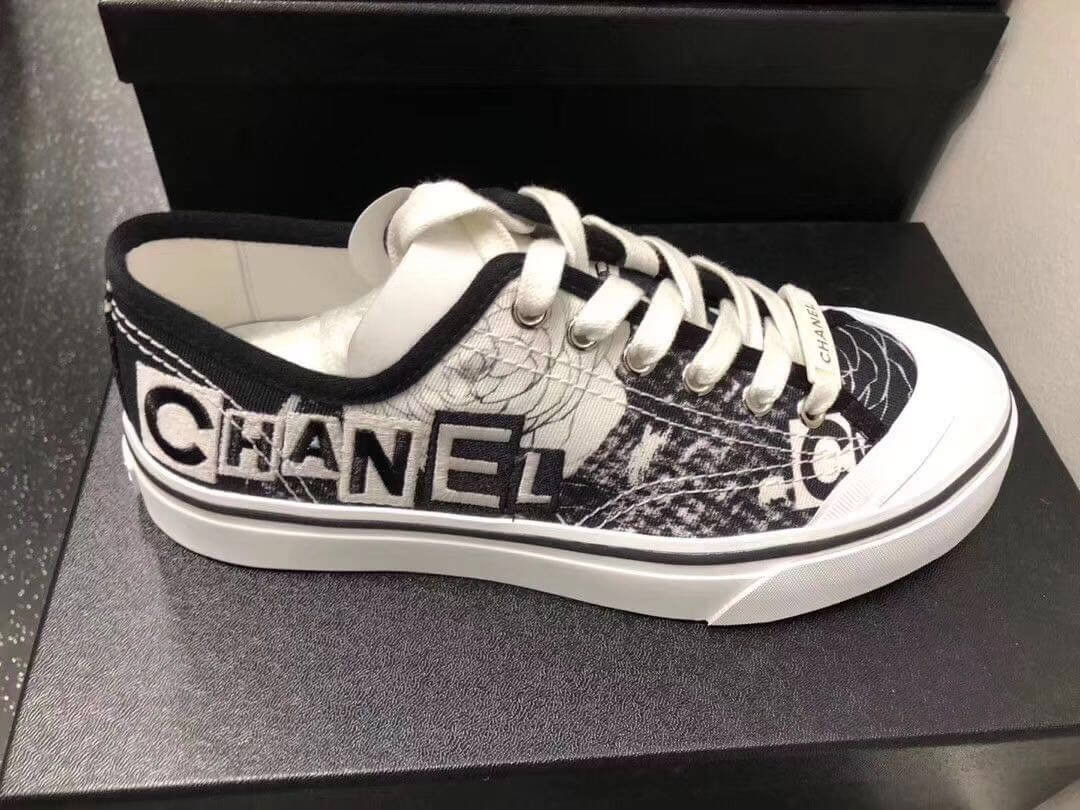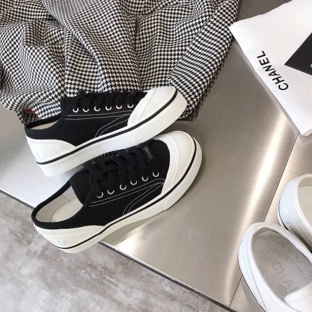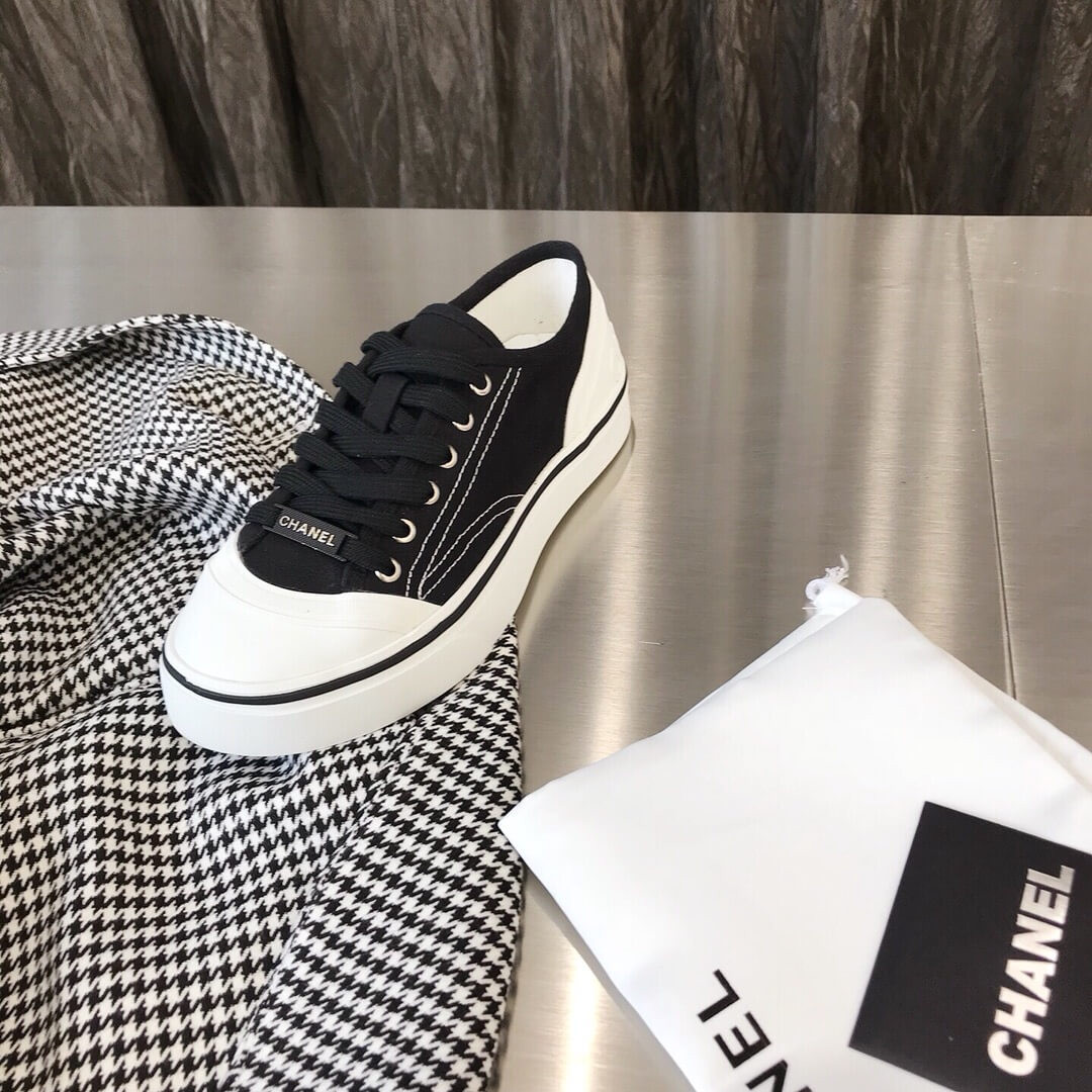 Chanel Canvas Low-cut Sneakers Black and White Texture