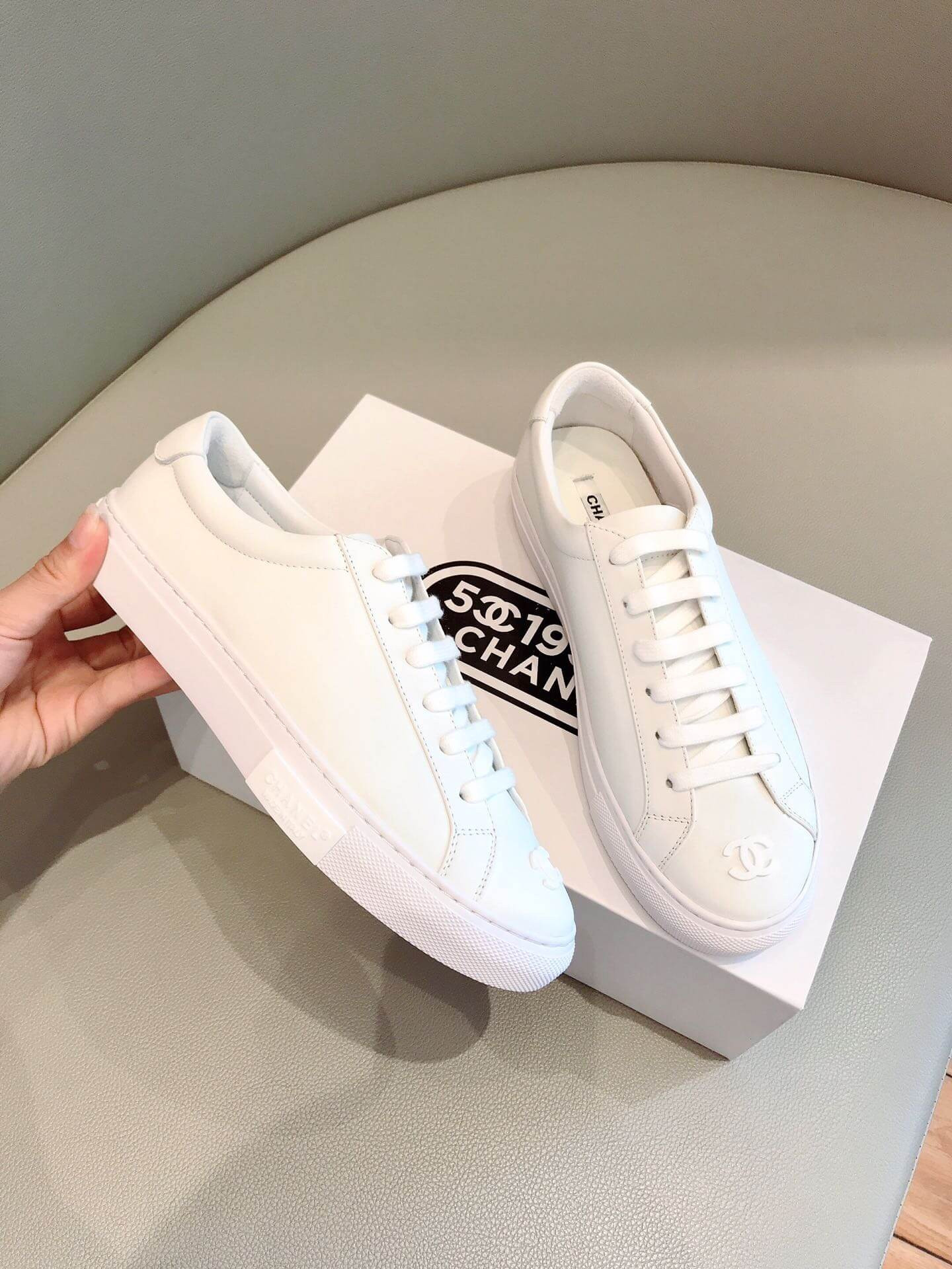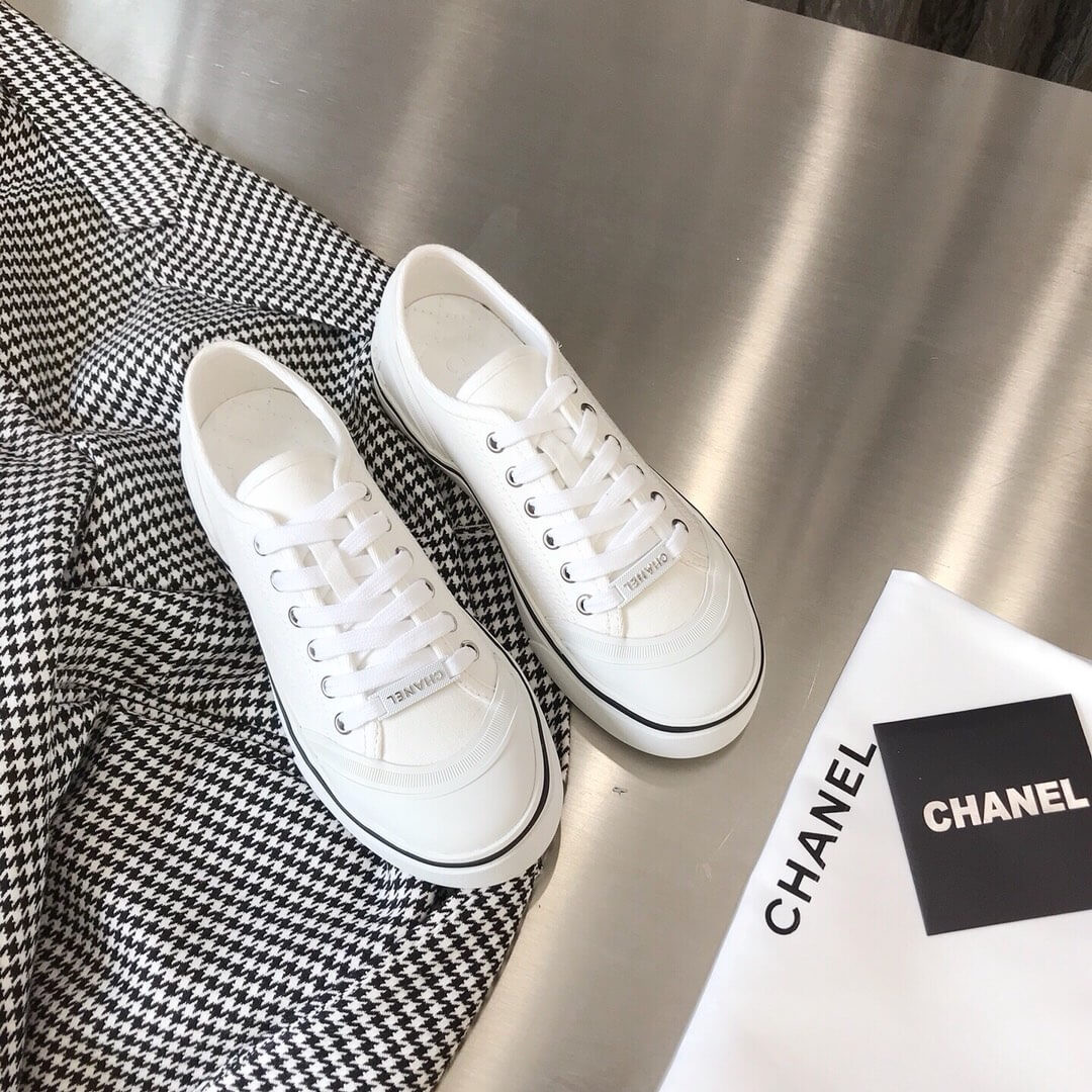 Chanel 2020ss Vintage Sneakers Embroidered White Logo