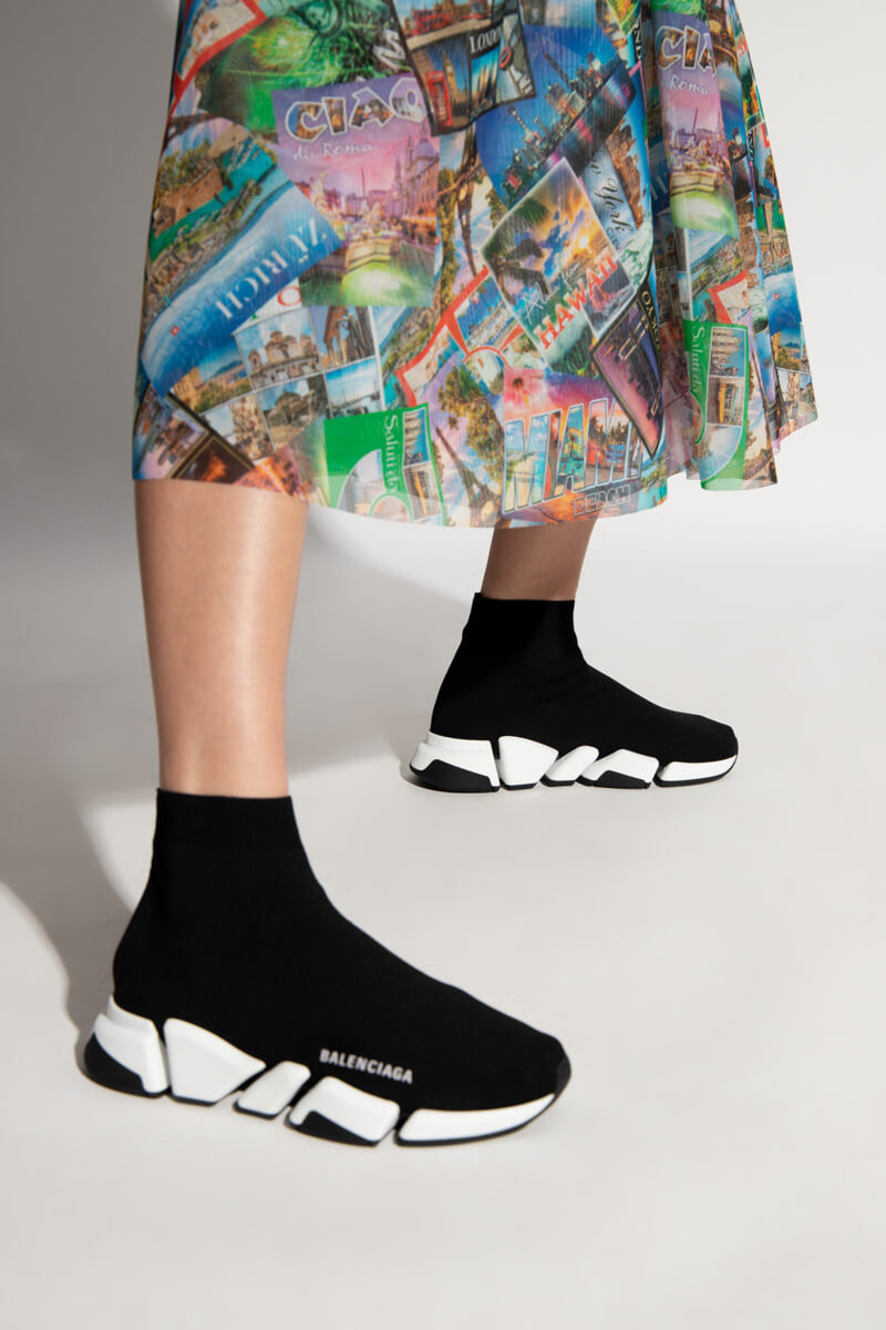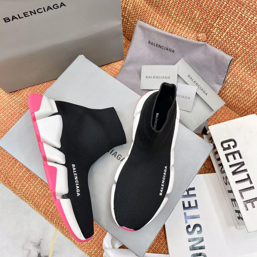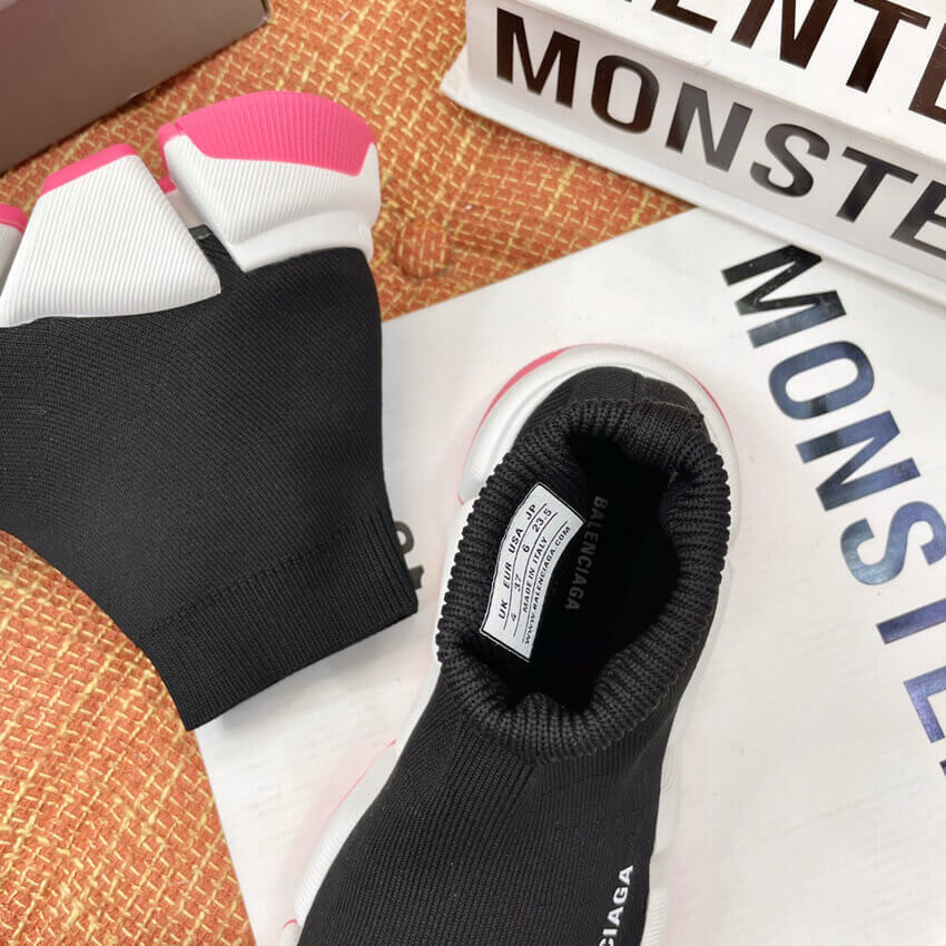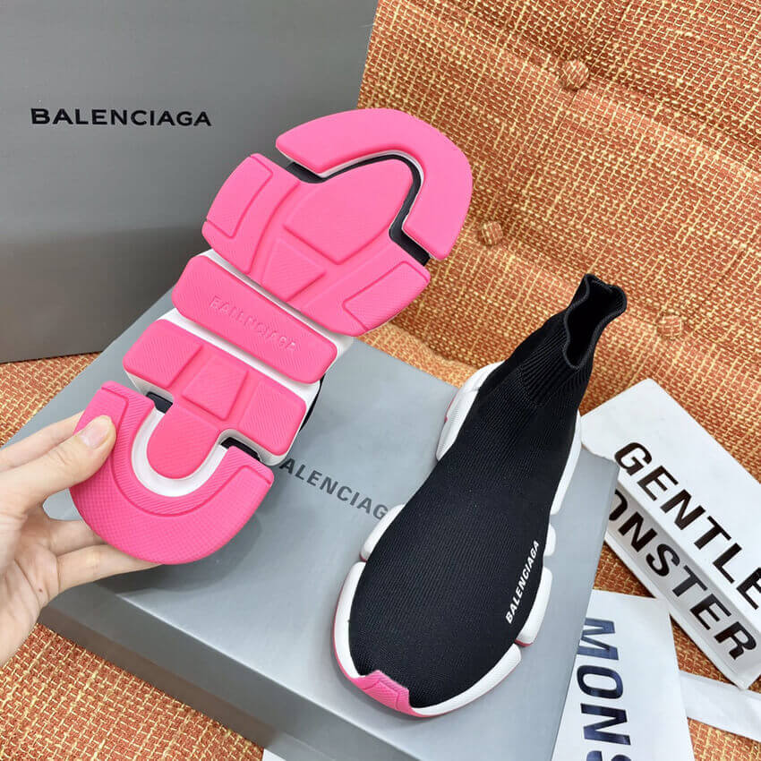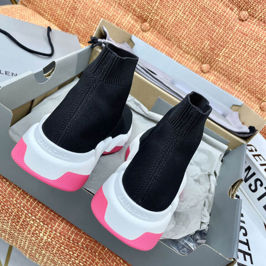 Balenciaga Speed 2.0 Knit Sock Sneakers 617239 Metallic Black/White/Pink