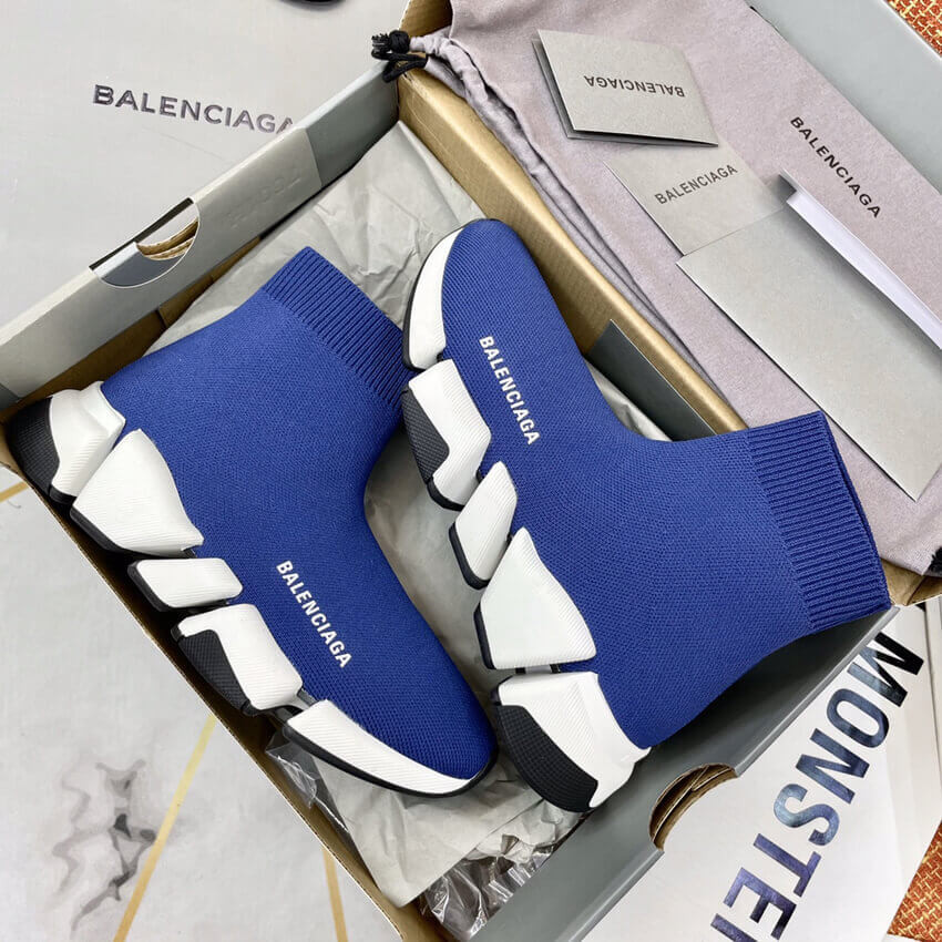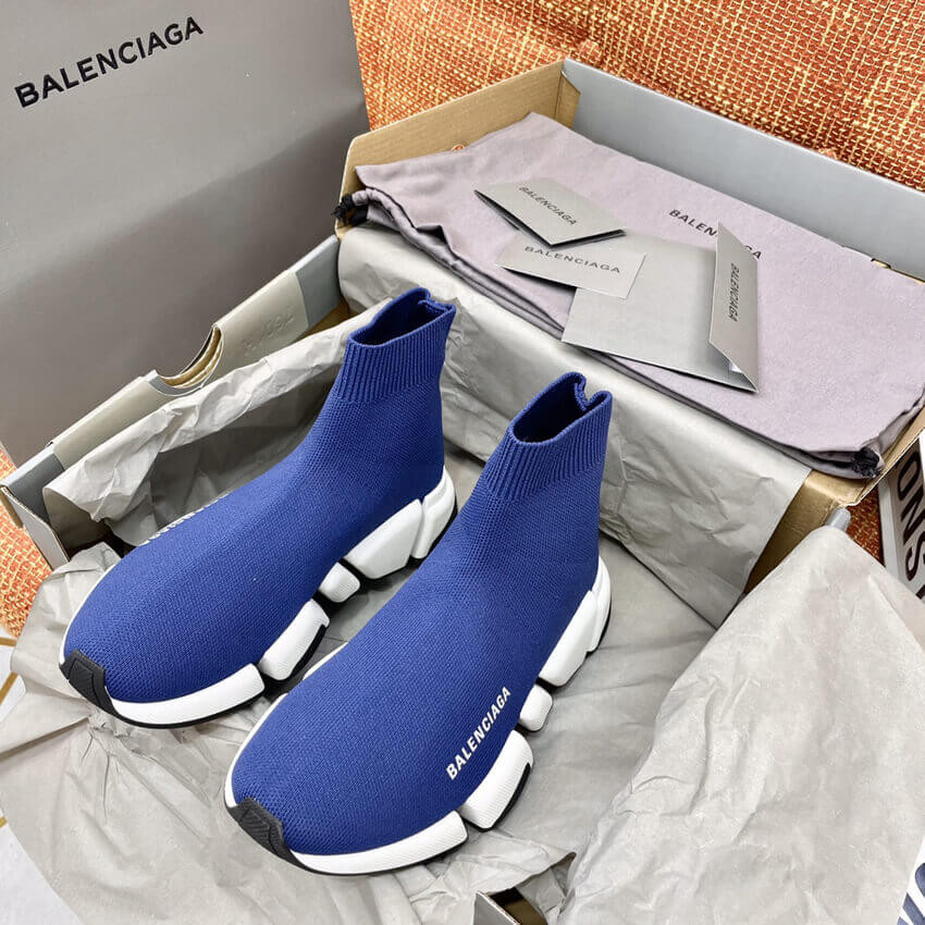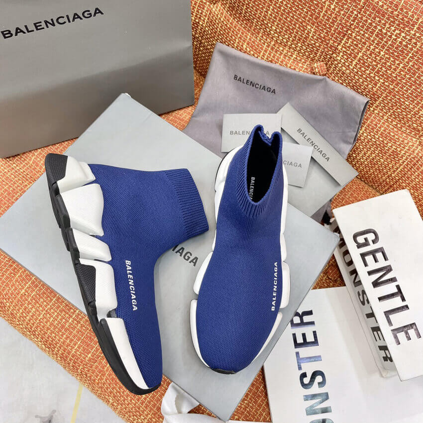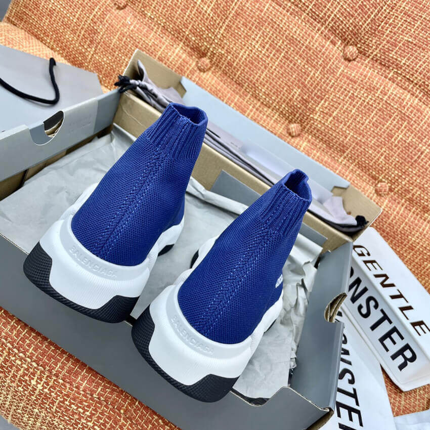 Balenciaga Speed 2.0 Knit Sock Sneakers 617239 Navy Blue/White