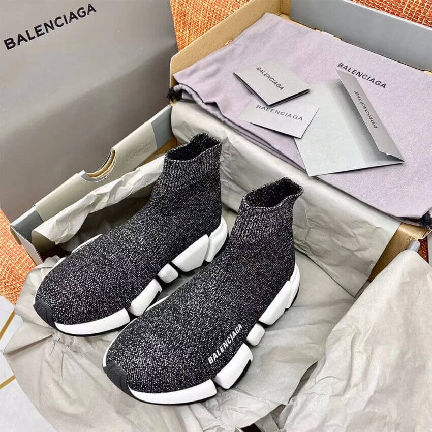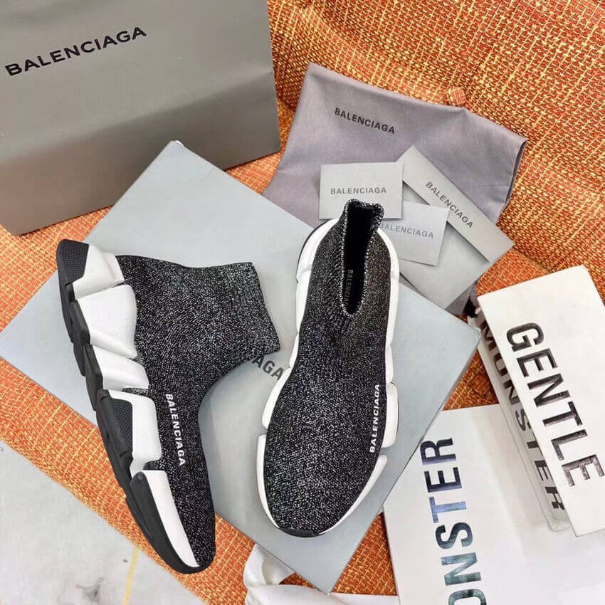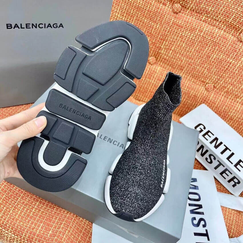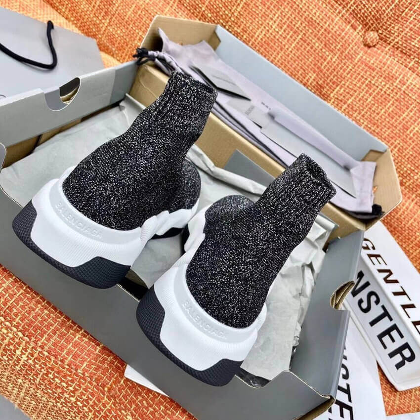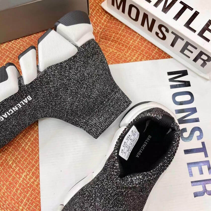 Balenciaga Speed 2.0 Knit Sock Sneakers 617239 Metallic Black/White