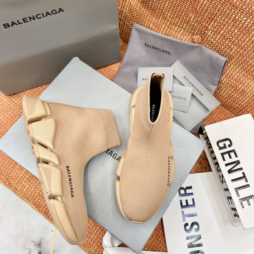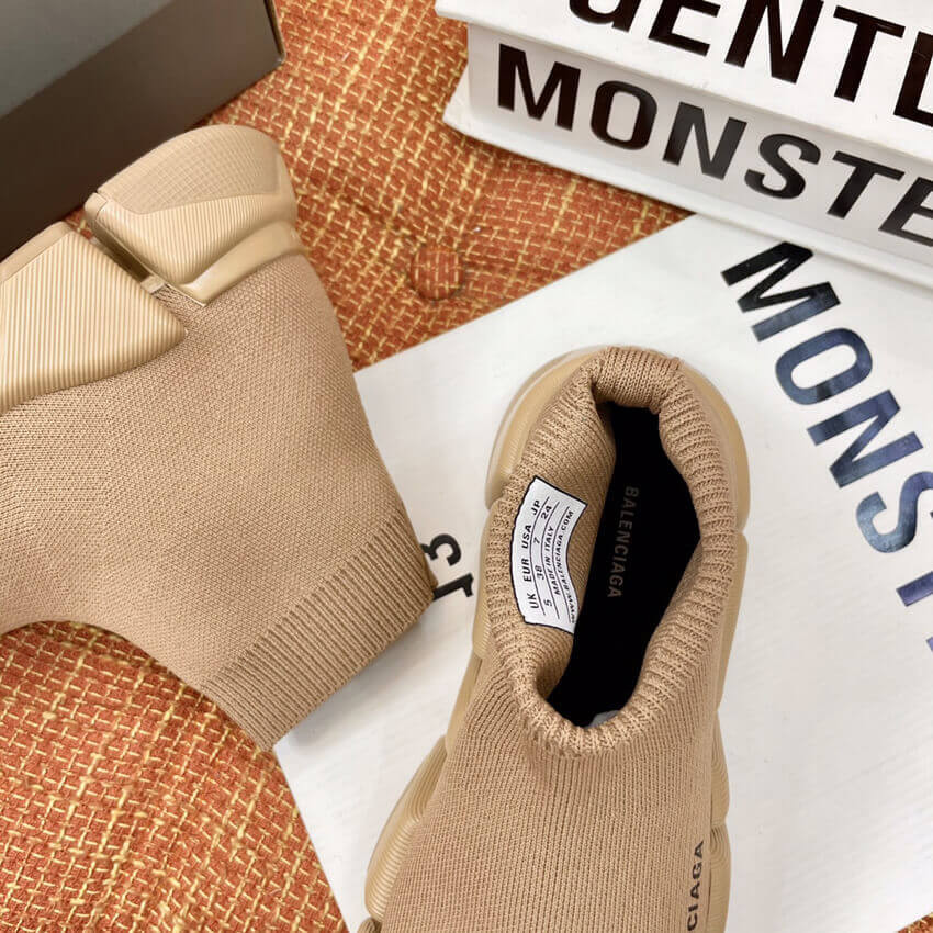 Balenciaga Speed 2.0 Knit Sock Sneakers 617239 Tan