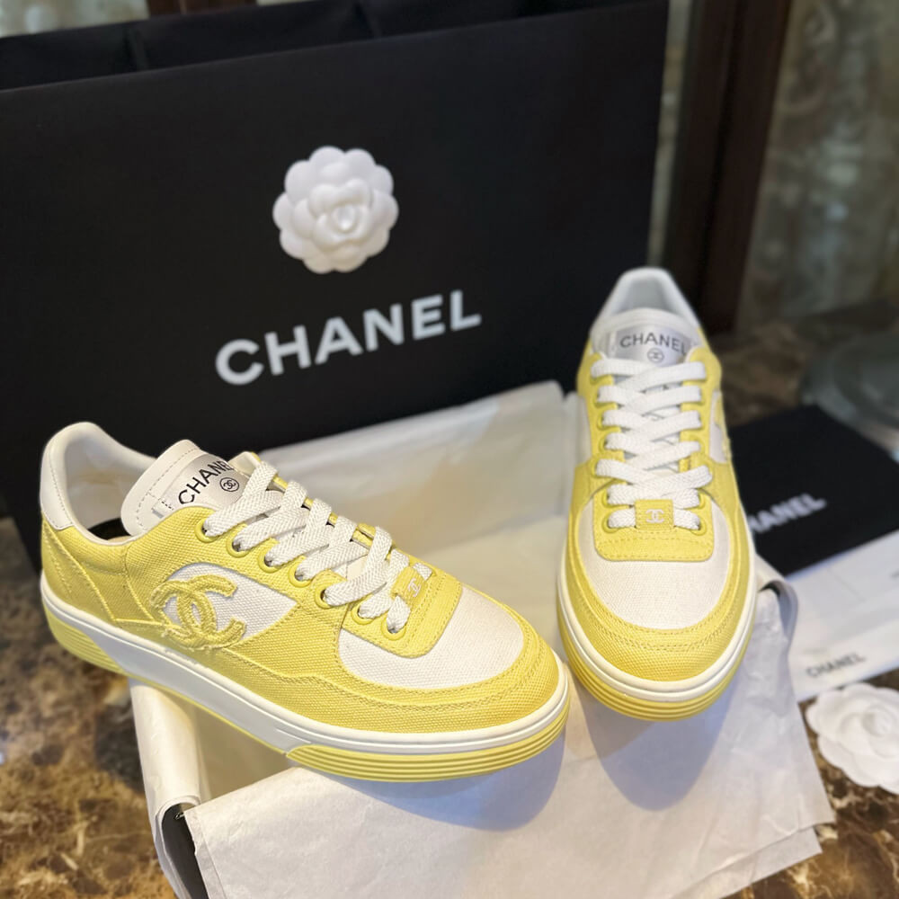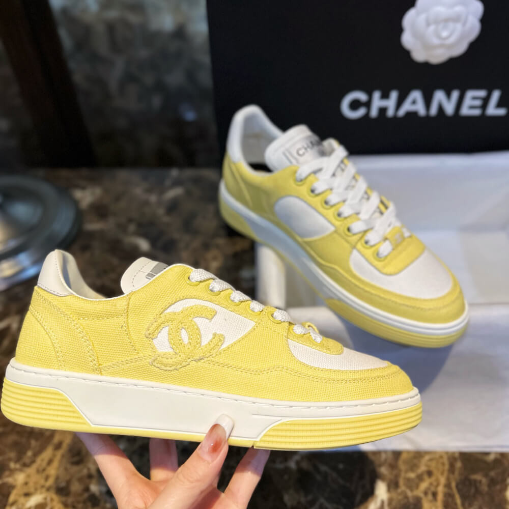 Chanel Fabric Runners Trainers Sneakers G37488 Yellow White