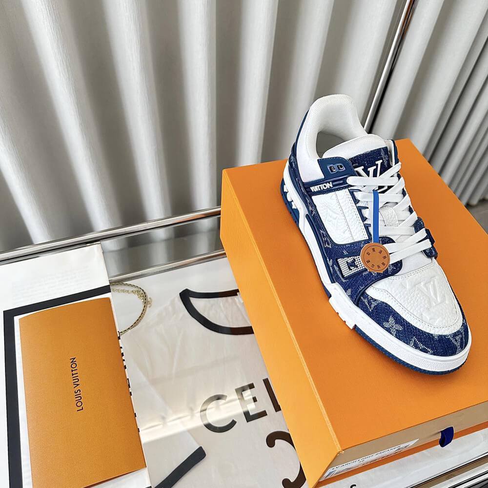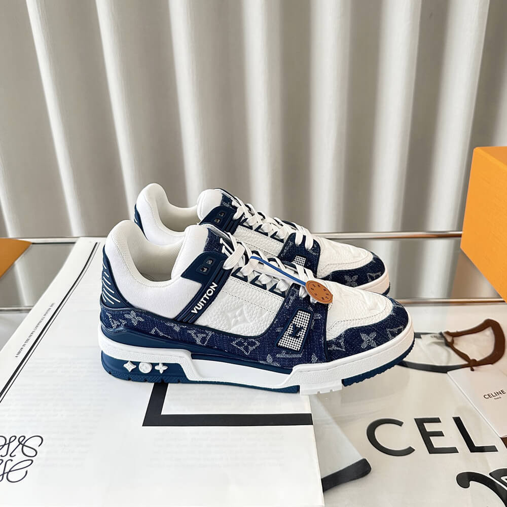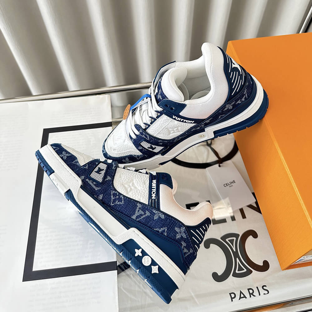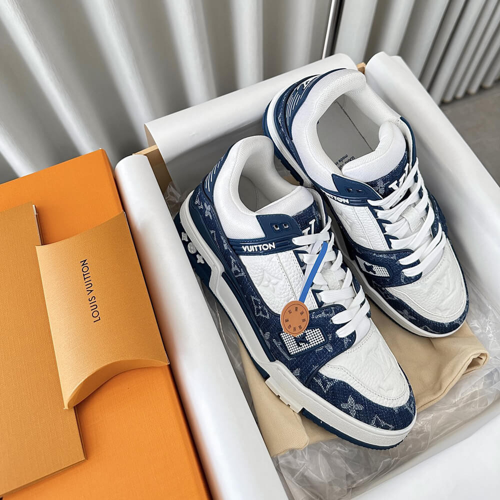 Louis Vuitton LV Trainer Sneaker Monogram Denim White Blue