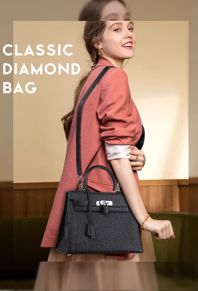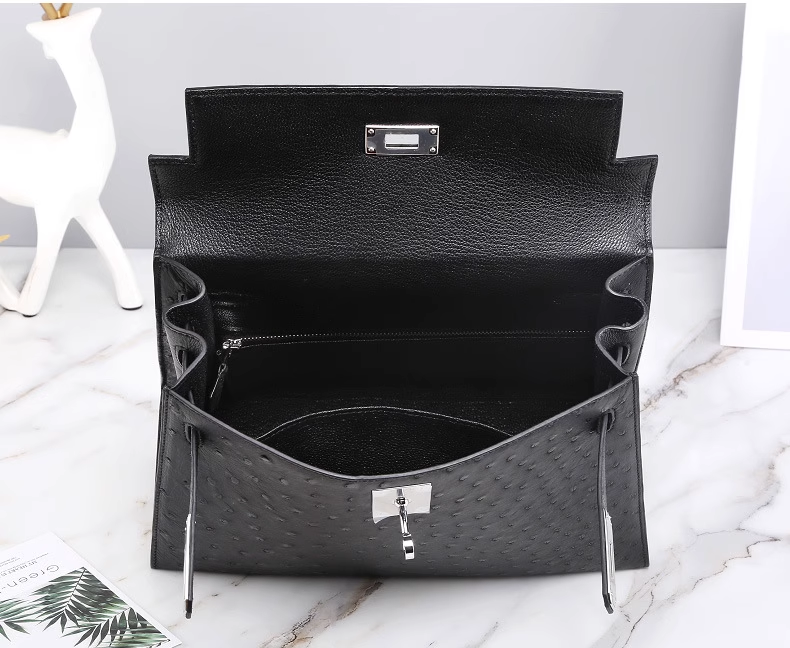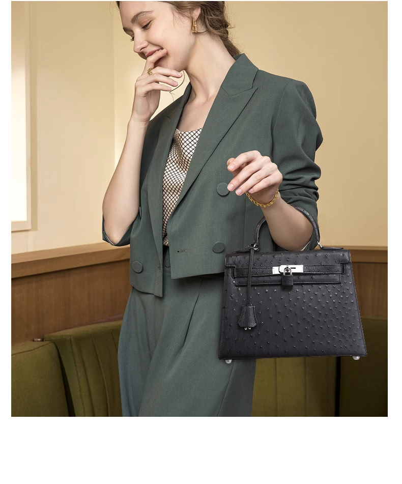 Kelly 25/28/32cm South African KK Ostrich Leather, Premium Fully Handcrafted Exclusive Custom –pearl-gray