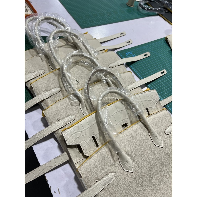 Hermes bag making process Bk25/30 milkshake white touch The process of making crocodile skin pattern